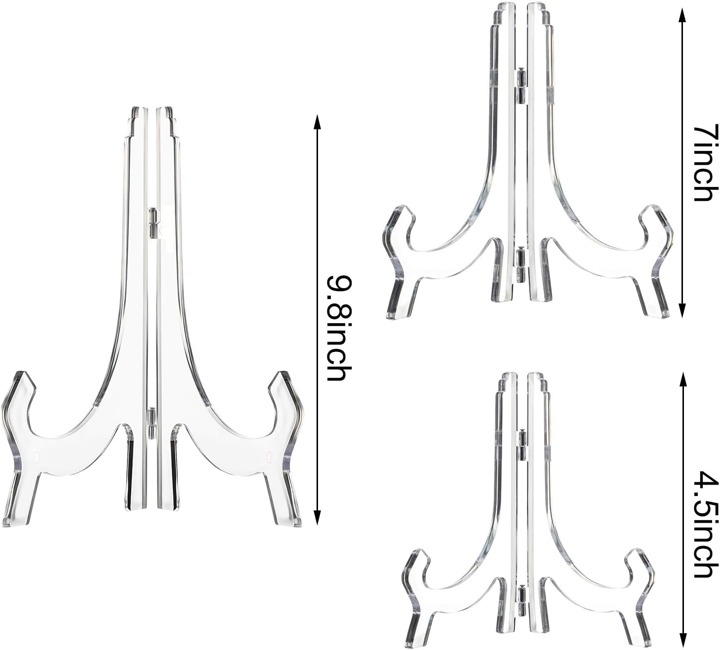 • Comprehensive Groups: 3 pieces clear plastic easels totally, 3 size: 4.5 inches, 7 inches, 9.8 inches, enough quantity for you to hold different sizes items