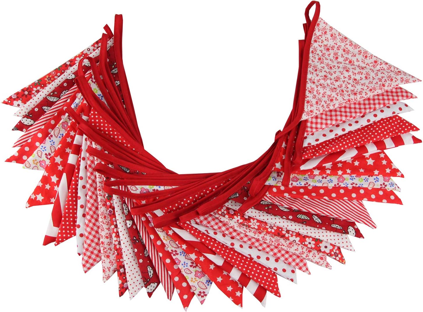 10M/32Ft Triangle Bunting Banner, 36 Pcs Cotton Fabric Flags Pennant Garlands for Birthday Party, Wedding, Baby Shower, Outdoor and Home Decorations (Red)
