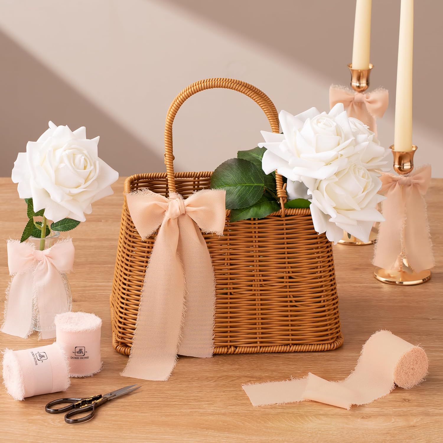• 【Multiple Applications】This chiffon silk ribbon is great for gift wrapping, wedding decorations, wedding invitations, birthday parties, holiday celebrations, bridal showers, newborn photography props, wedding aisle backgrounds, boutonnieres, flower girl baskets, bouquet wrapping ribbons, Easter baskets, and even Christmas gift wrapping. Its elegant appearance makes it an ideal choice for bohemian or rustic DIY projects.