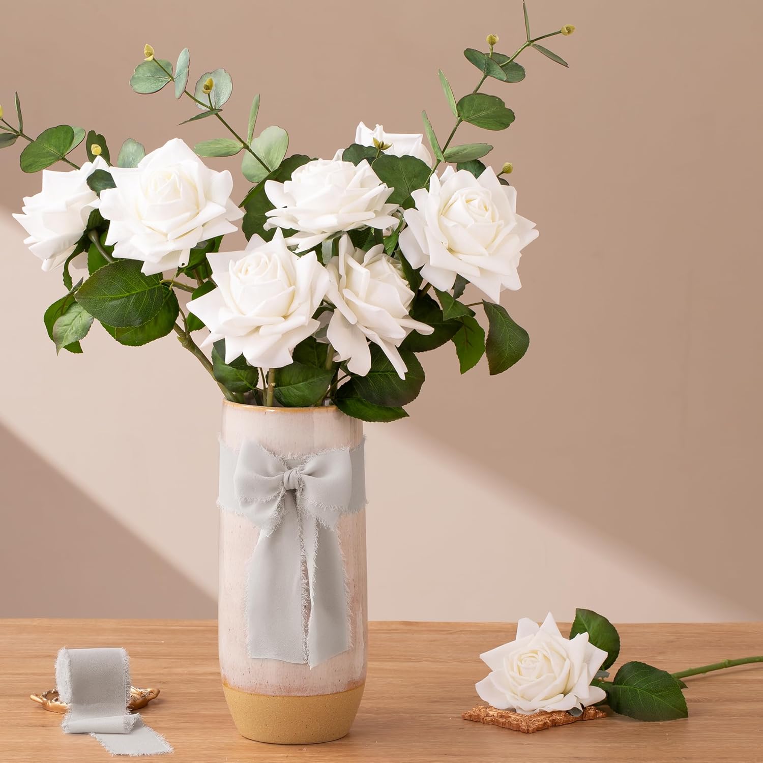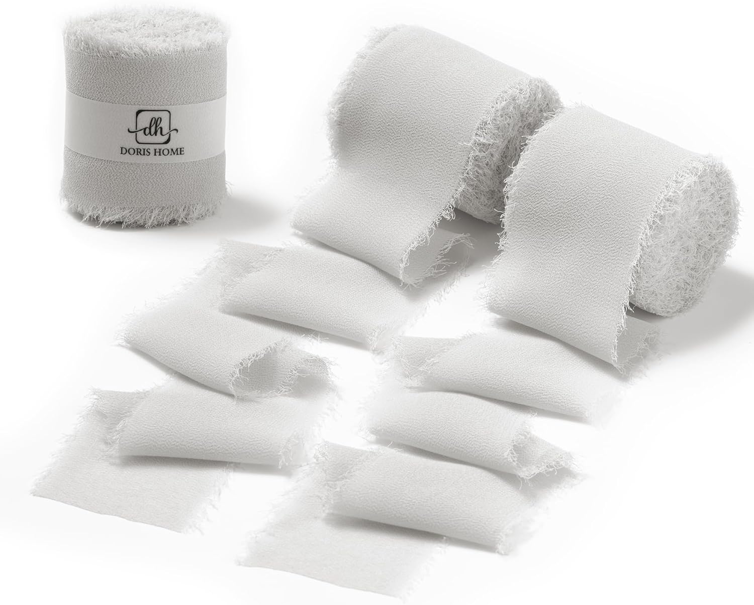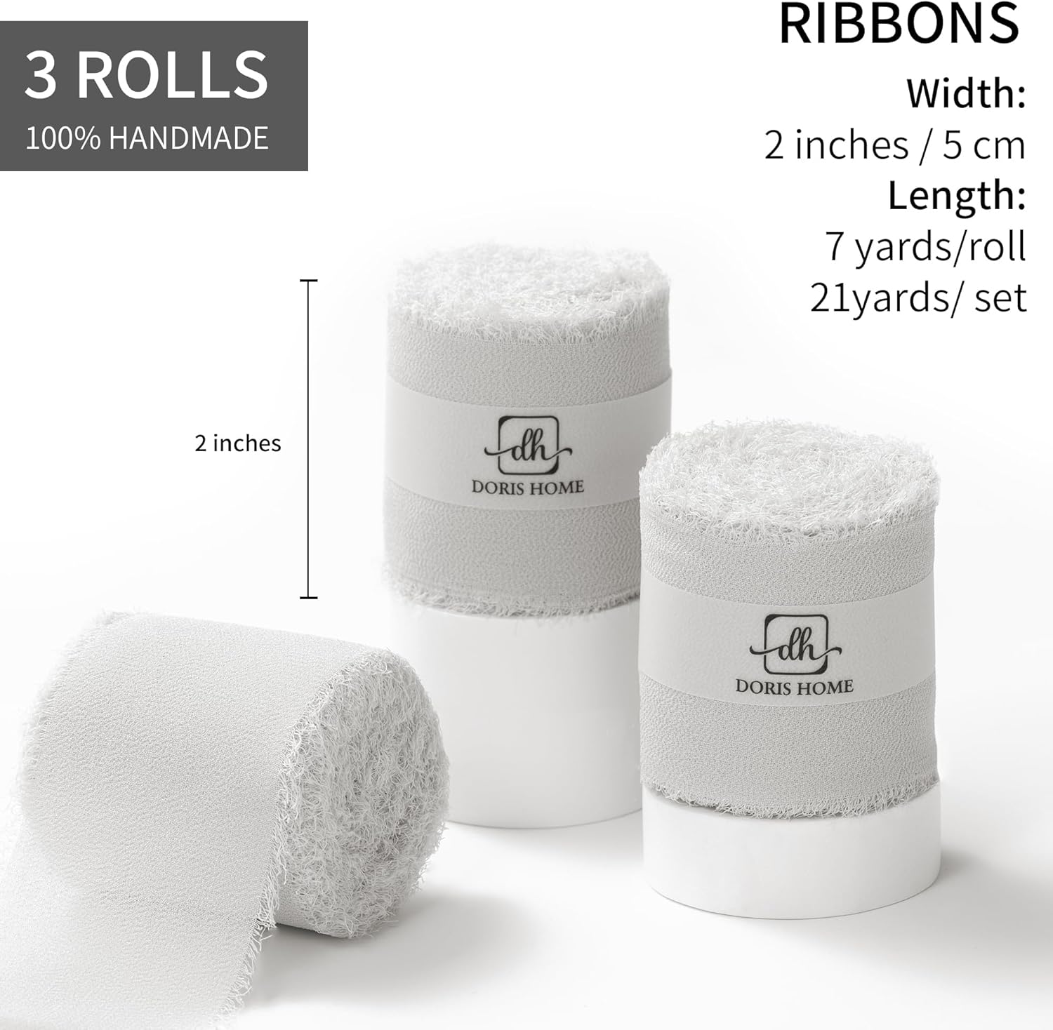 • 【Size and Color】Each roll of chiffon ribbon is 2 inches wide and 7 yards long, perfect for various creative uses such as making bows, decorating wreaths, and DIY crafts. This set includes 3 rolls light grey ribbons. These vibrant frayed ribbons add a rustic charm to your creations, ideal for bouquet wrap or gift ribbon.