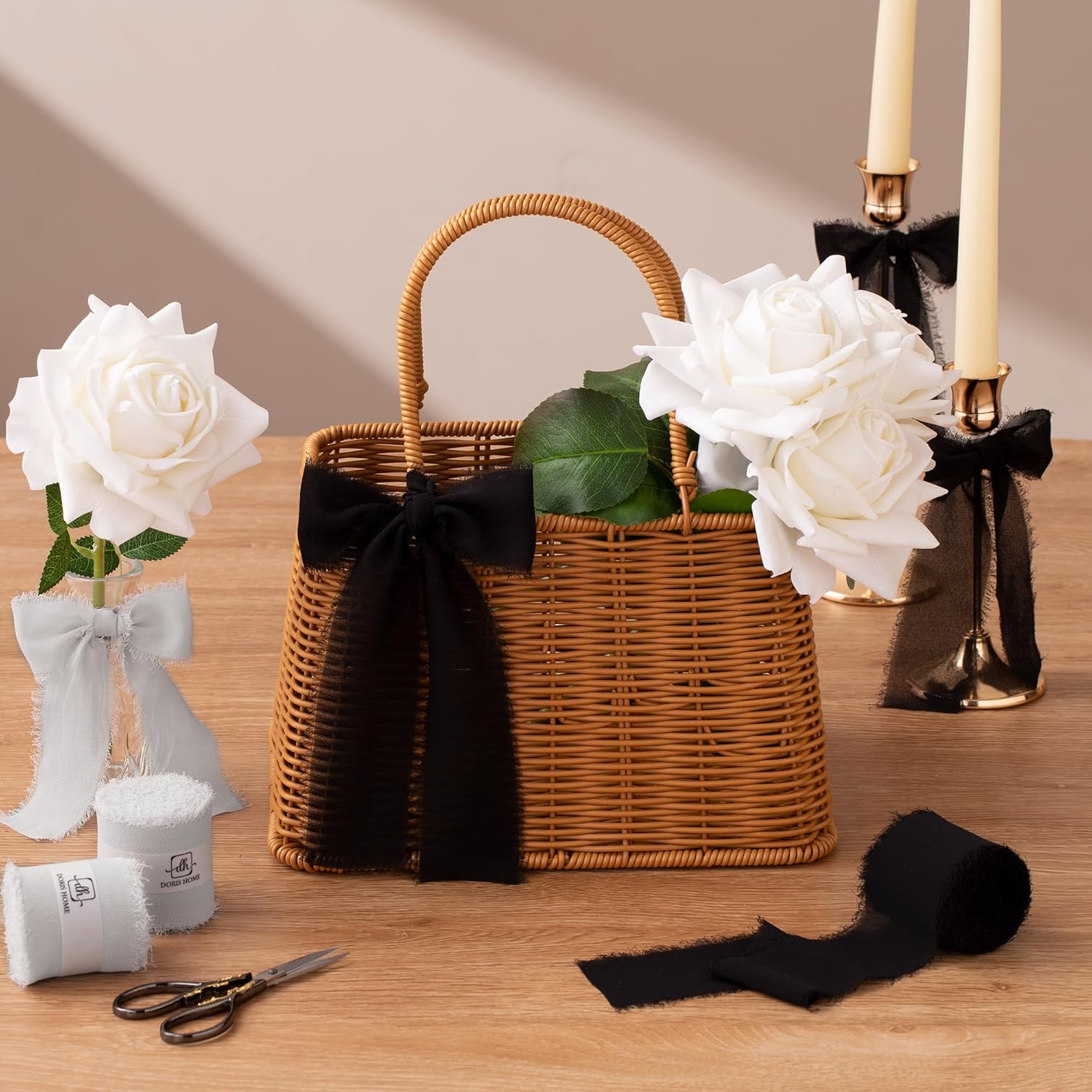 • 【Multiple Applications】This chiffon silk ribbon is great for gift wrapping, wedding decorations, wedding invitations, birthday parties, holiday celebrations, bridal showers, newborn photography props, wedding aisle backgrounds, boutonnieres, flower girl baskets, bouquet wrapping ribbons, Easter baskets, and even Christmas gift wrapping. Its elegant appearance makes it an ideal choice for bohemian or rustic DIY projects.