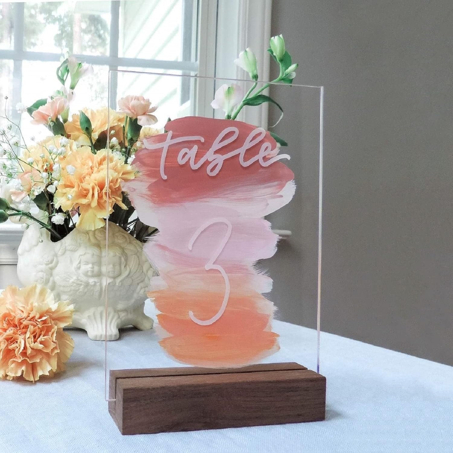 UNIQOOO 5 Pack Rustic Acrylic Sign Holders | Walnut Wood Table Numbers Display Stands | Place Card Holder, Perfect for Retail Shop Wedding Dinner Party Events Decoration