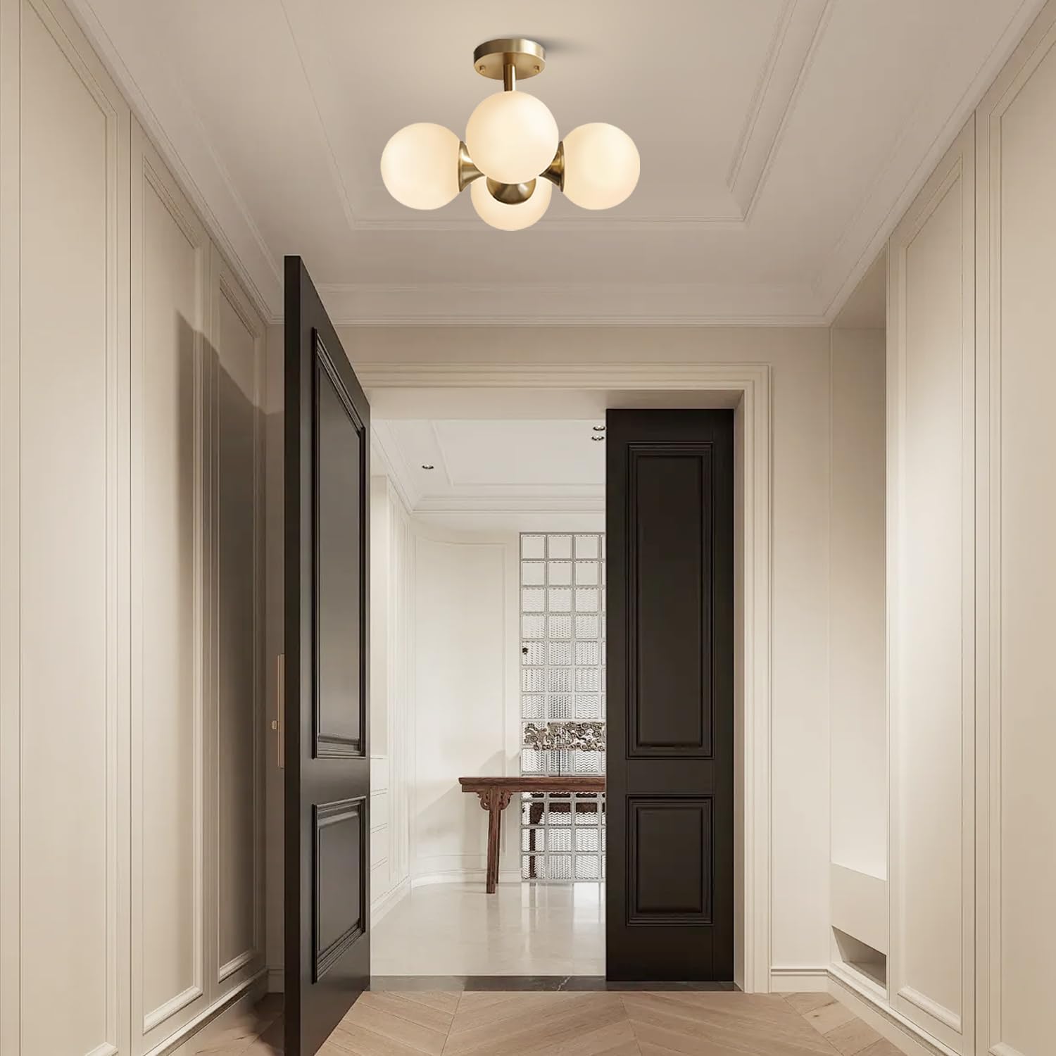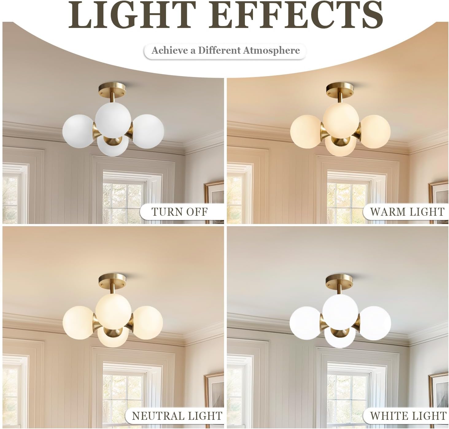 • ❆【Vintage Design】The semi-flush ceiling light featuring a frosted white glass shade and vintage style gold lamp body, bringing a modern twist to its avant-garde retro design, which is not only a ceiling light but also an ornament.