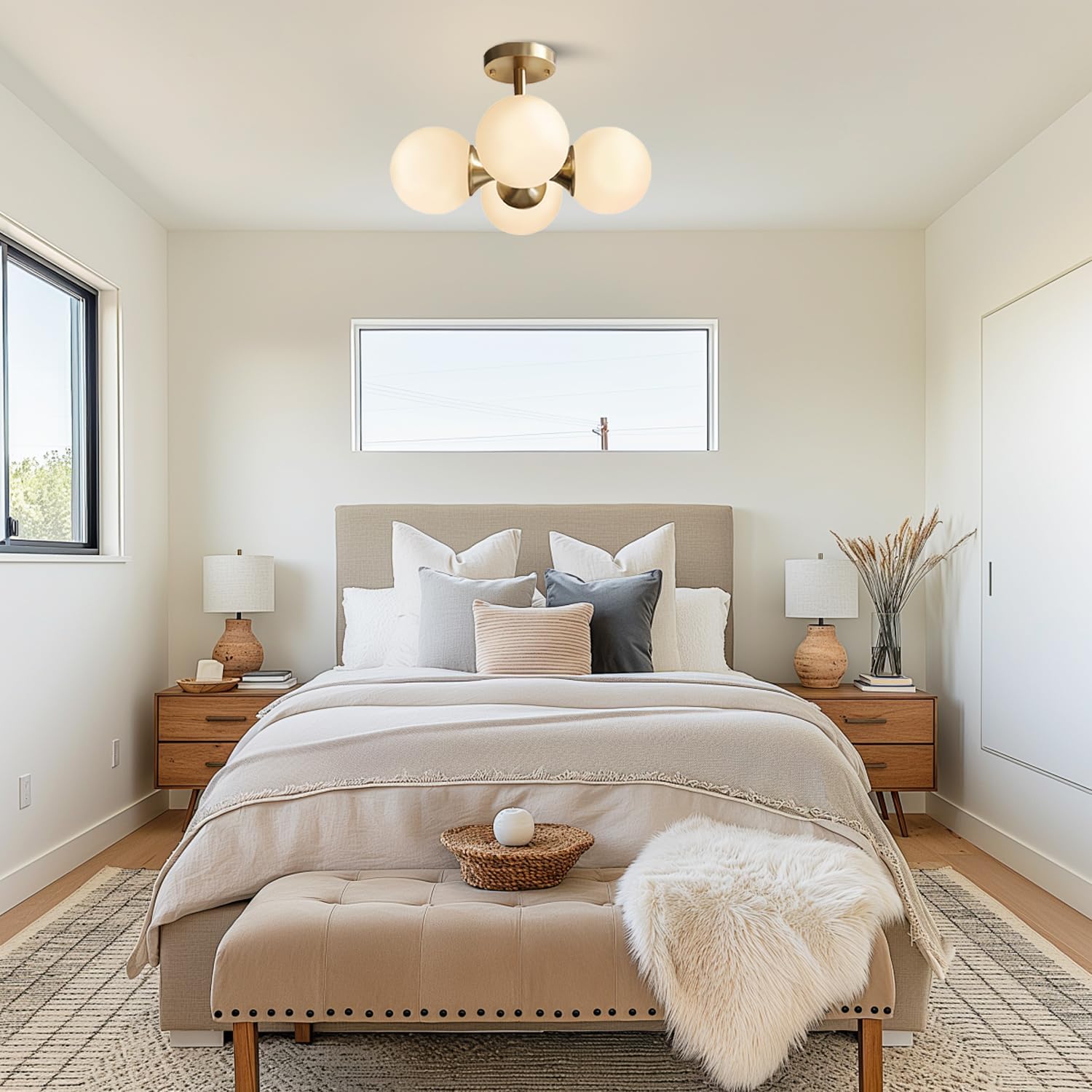 • ❆【Frosted White Glass Globe】With artificial frosted white glass, this globe ceiling light will add a nice addition to your home space, high light transmission, no dark areas. Compatible With both low and high ceilings.