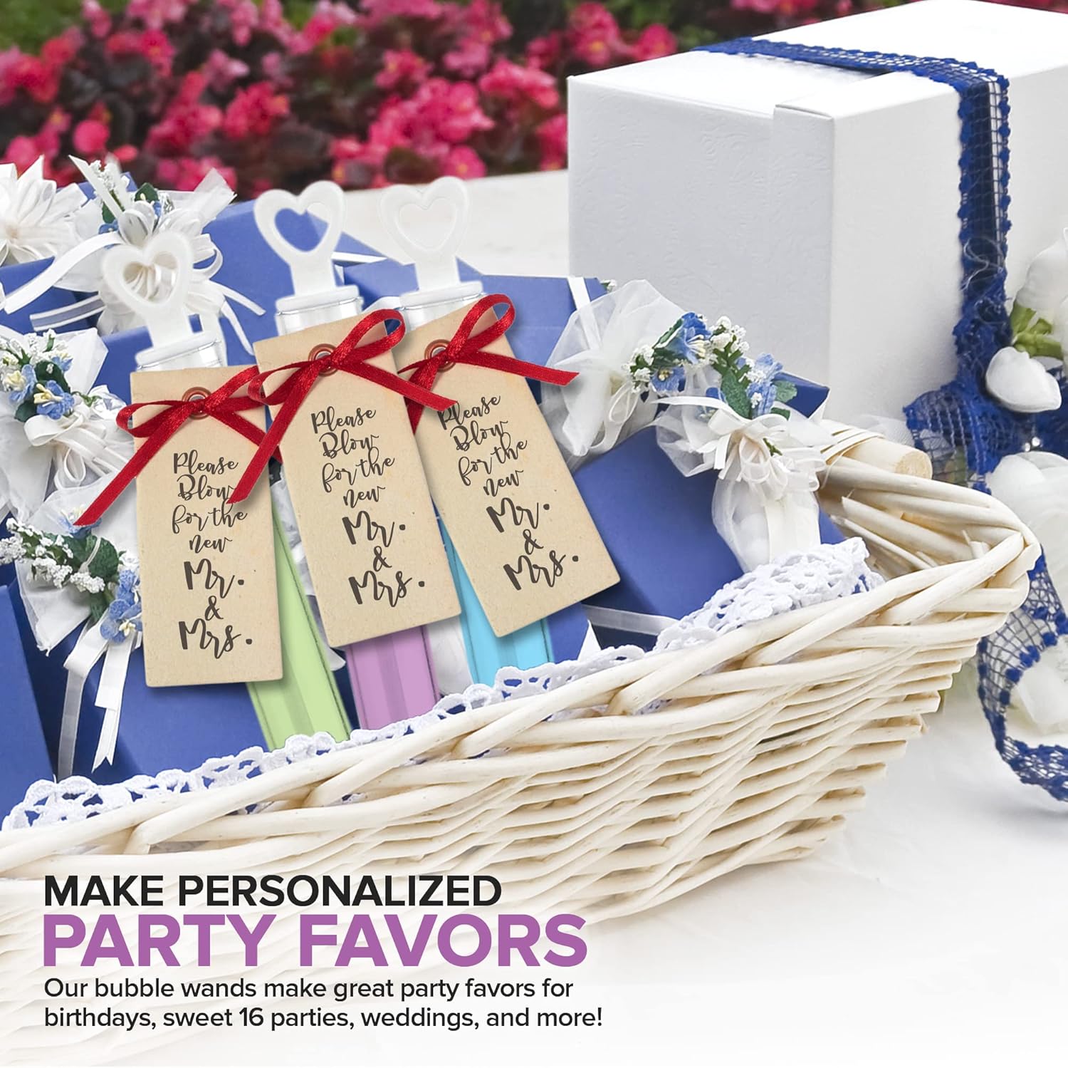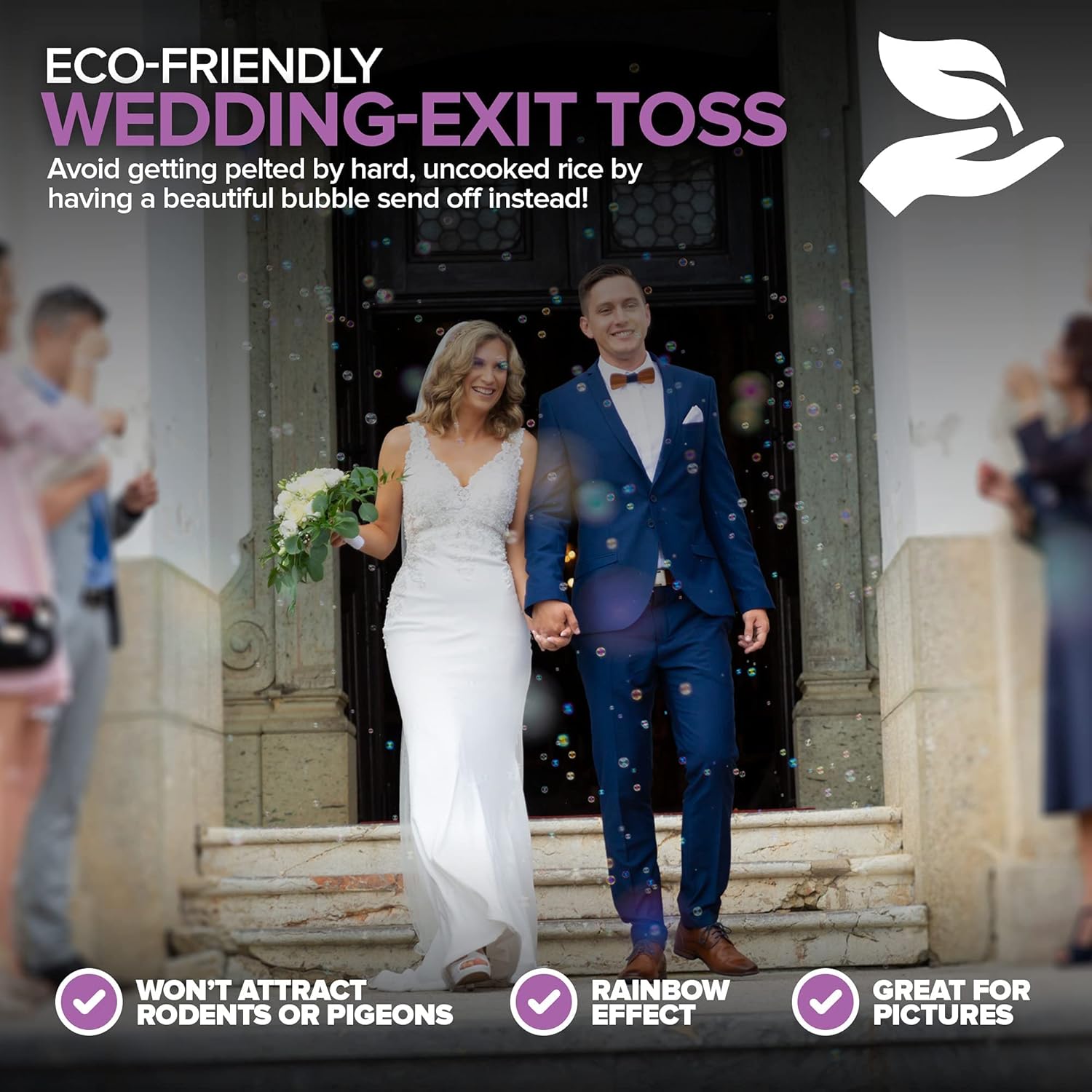 • Heart-Top Wands: Create beautiful memories with a fun bubble send off. Do yourself a favor - who wants to get pelted by hard, uncooked rice anyway? Our bubbles won't attract rodents or pigeons either, so no need to worry about invited guests.