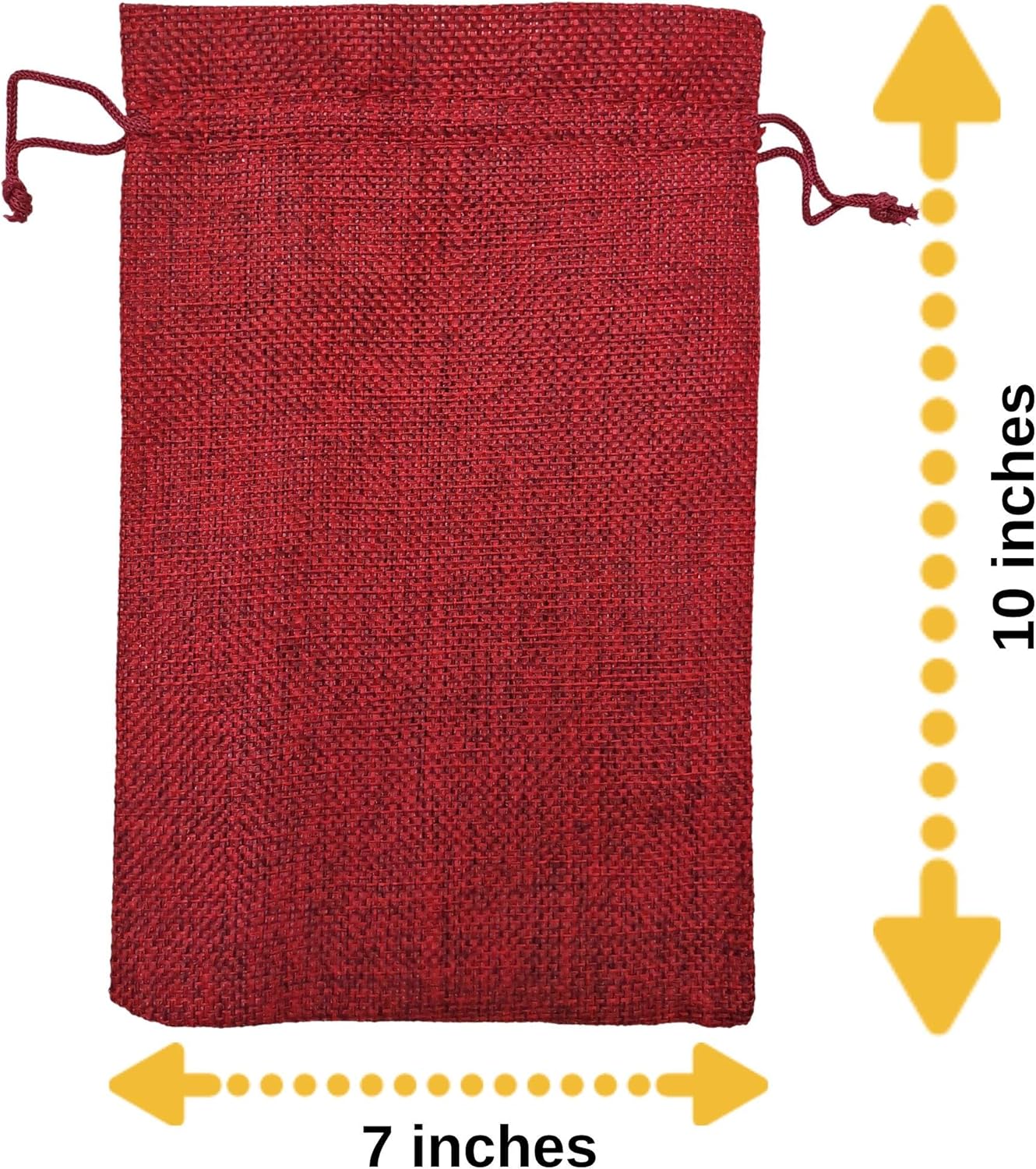 Supply Friend 50 Red Burlap Bags with Drawstring, 7x10 Inch Gift Bag Bulk Pack for Mugs, Mason Jars, Christmas, Wedding Party Favors, Jewelry and Treat Pouches