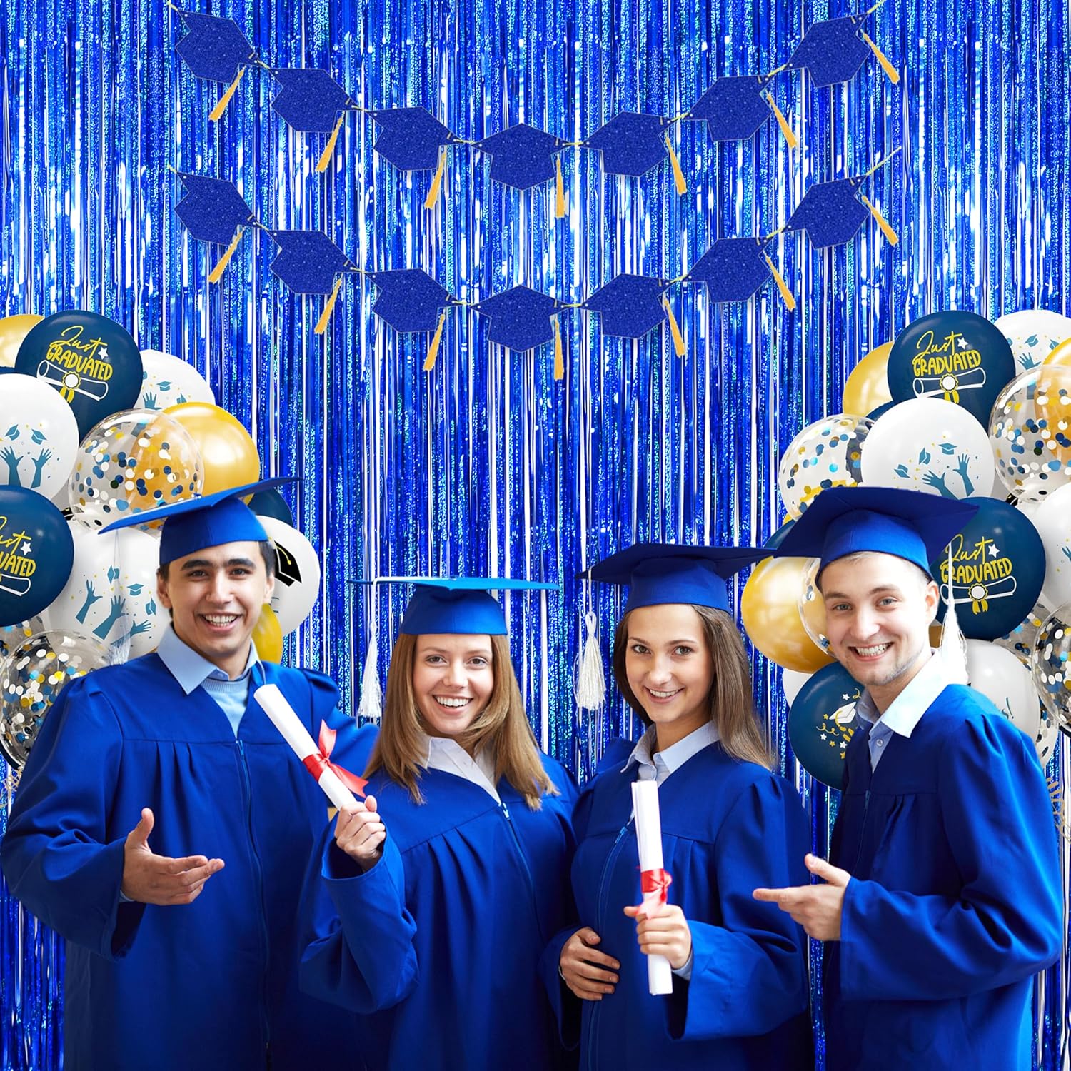 • The navy party backdrop is already prepared with adhesive strip, easy to use and convenient to store and reuse at another time