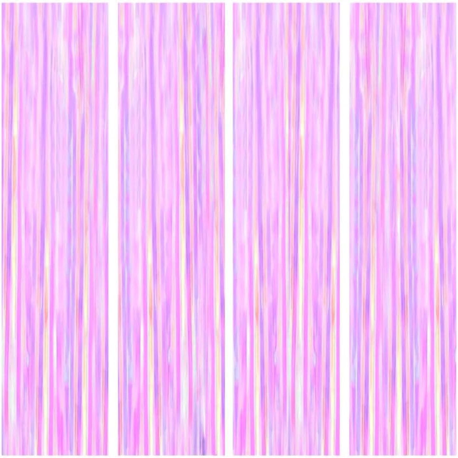 BTSD-home 4 Pack Iridescent Transparent Purple Foil Fringe Curtain, Metallic Photo Booth Tinsel Backdrop Door Curtains for Wedding Birthday Baby Shower Bachelorette Party Decorations(8ft x 3ft)