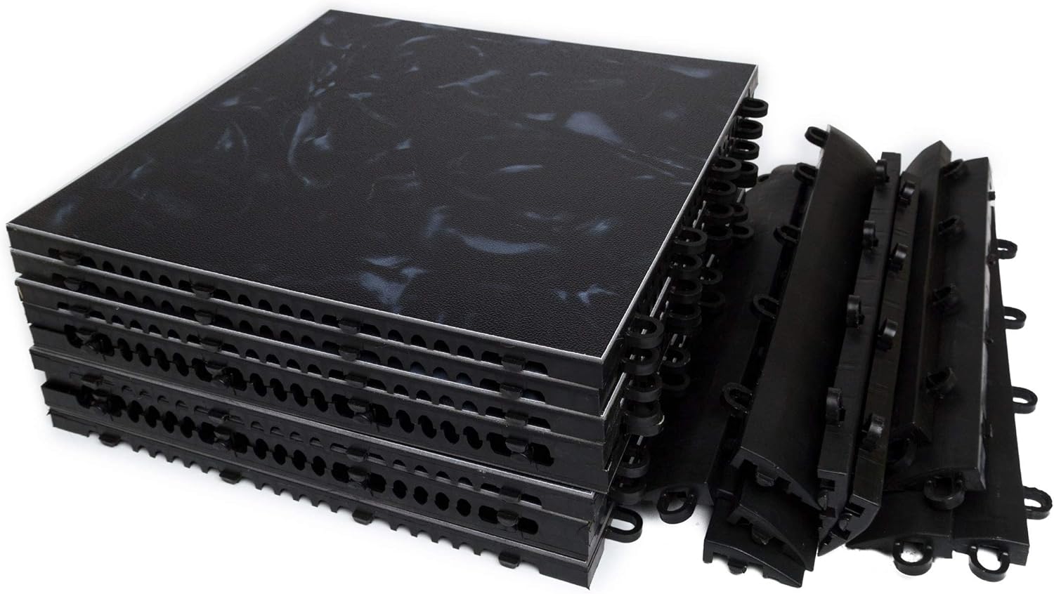 Big Floors 3X3LUXBLAKFLOOR Modular Interlocking Lightweight Plastic Dance Floor Kit (3' x 3'), Luxury Black, 21 Piece