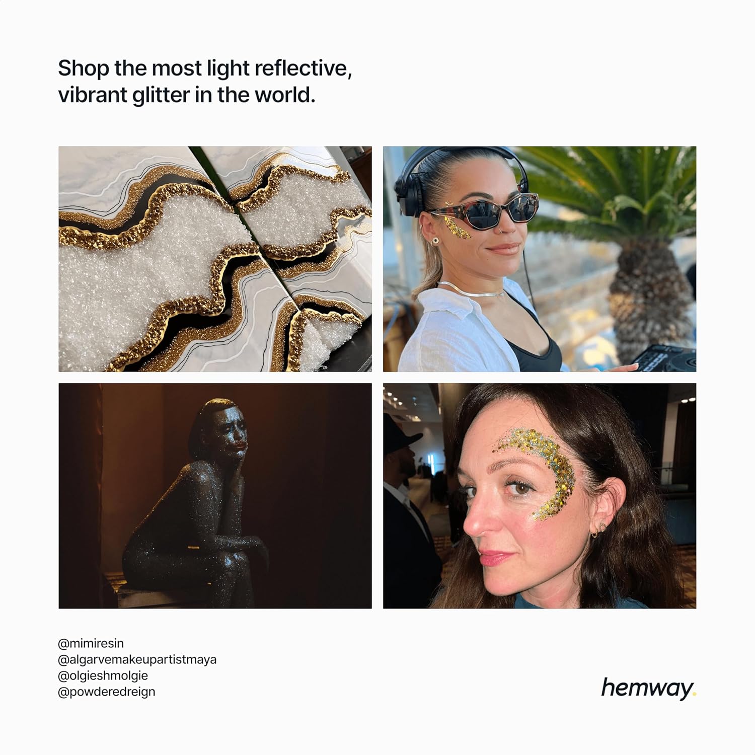 Hemway Biodegradable Glitter Eco Friendly - 100g/3.5oz Bio Cosmetic Safe Sparkle Vegan for Face Eyeshadow Body Hair Festival Makeup Craft - Fine (1/64" 0.015" 0.4mm) - Gold Holographic