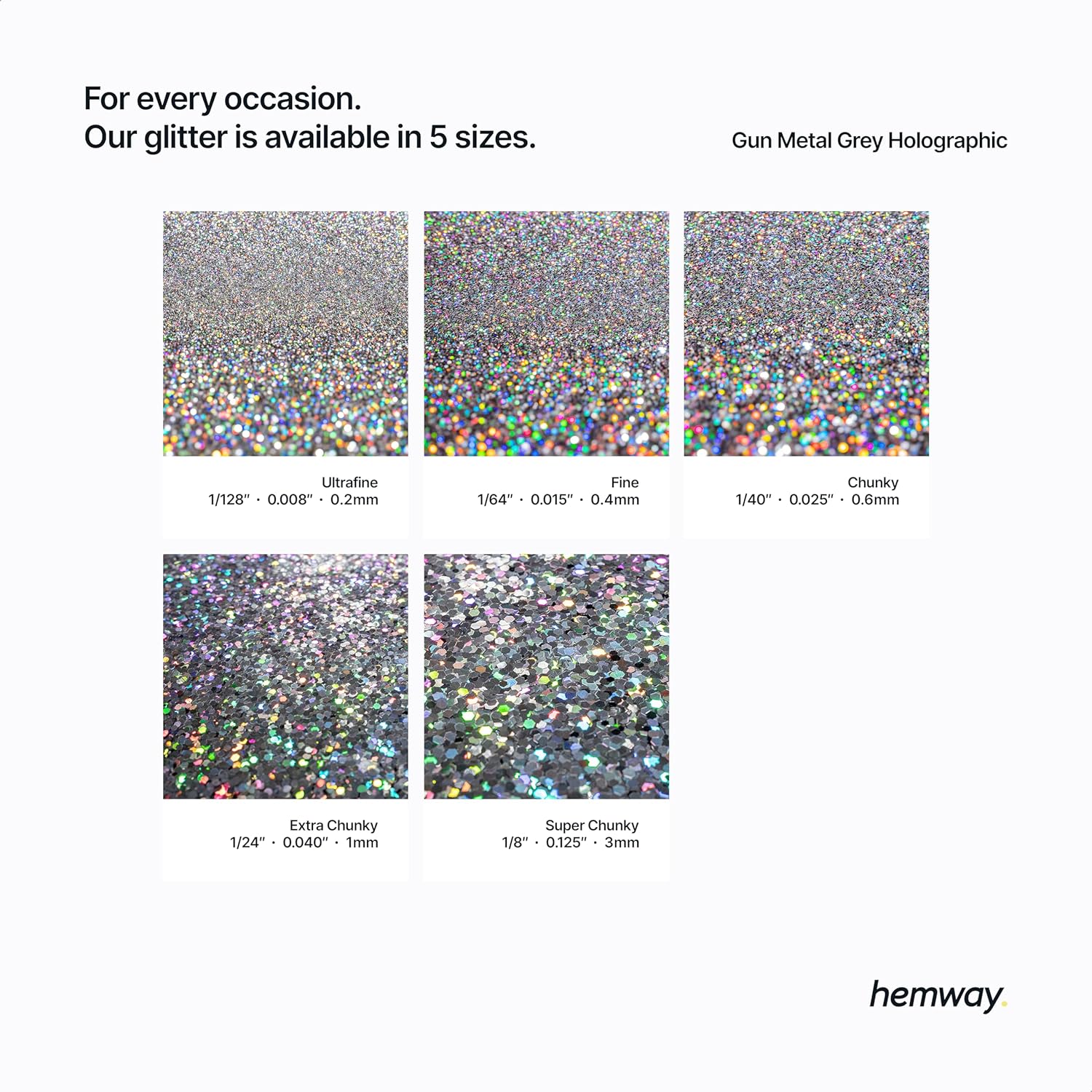 Hemway Eco Friendly Biodegradable Glitter 100g / 3.5oz Bio Cosmetic Safe Sparkle Vegan For Face, Eyeshadow, Body, Hair, Nail And Festival - Extra Chunky (1/24" 0.040" 1mm) - Gun Metal Grey Holographic