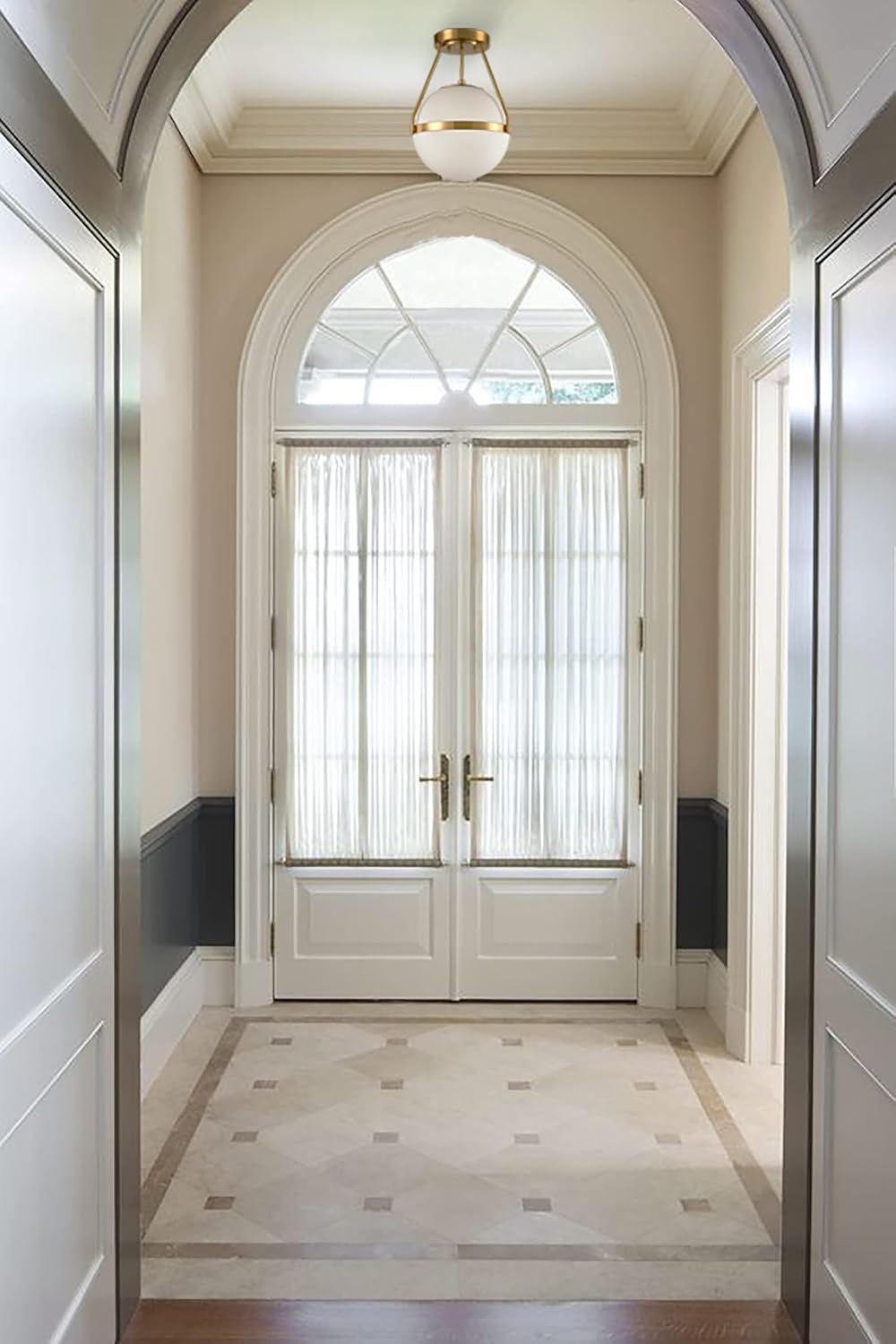• 𝔽𝕖𝕒π•₯𝕦𝕣𝕖::A ceiling light fixture features a smooth spherical opal glass shade with a brass base that shines with a metallic luster, creating an elegantly modern yet clean look that gives you a fashion forward feel.