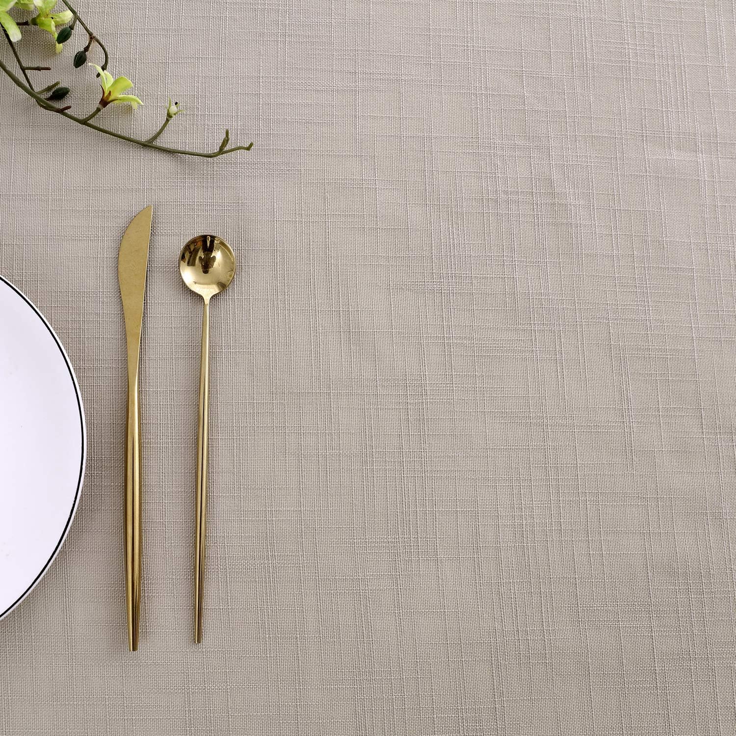 • Our table cloths are made of high-quality polyester faux linen yarn, with slubby texture. It is more durable than real linen yet soft and supple; while protecting table surface, our tablecloth also adds a sense of understated luxury to your dining scene.