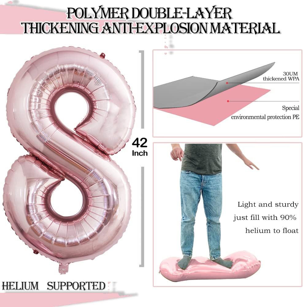 GOER 2 Pcs 42 Inch Rose Gold Foil Balloons Number 8,Huge Number Balloons for 8th 88th Birthday Party Supplies Anniversary Decorations