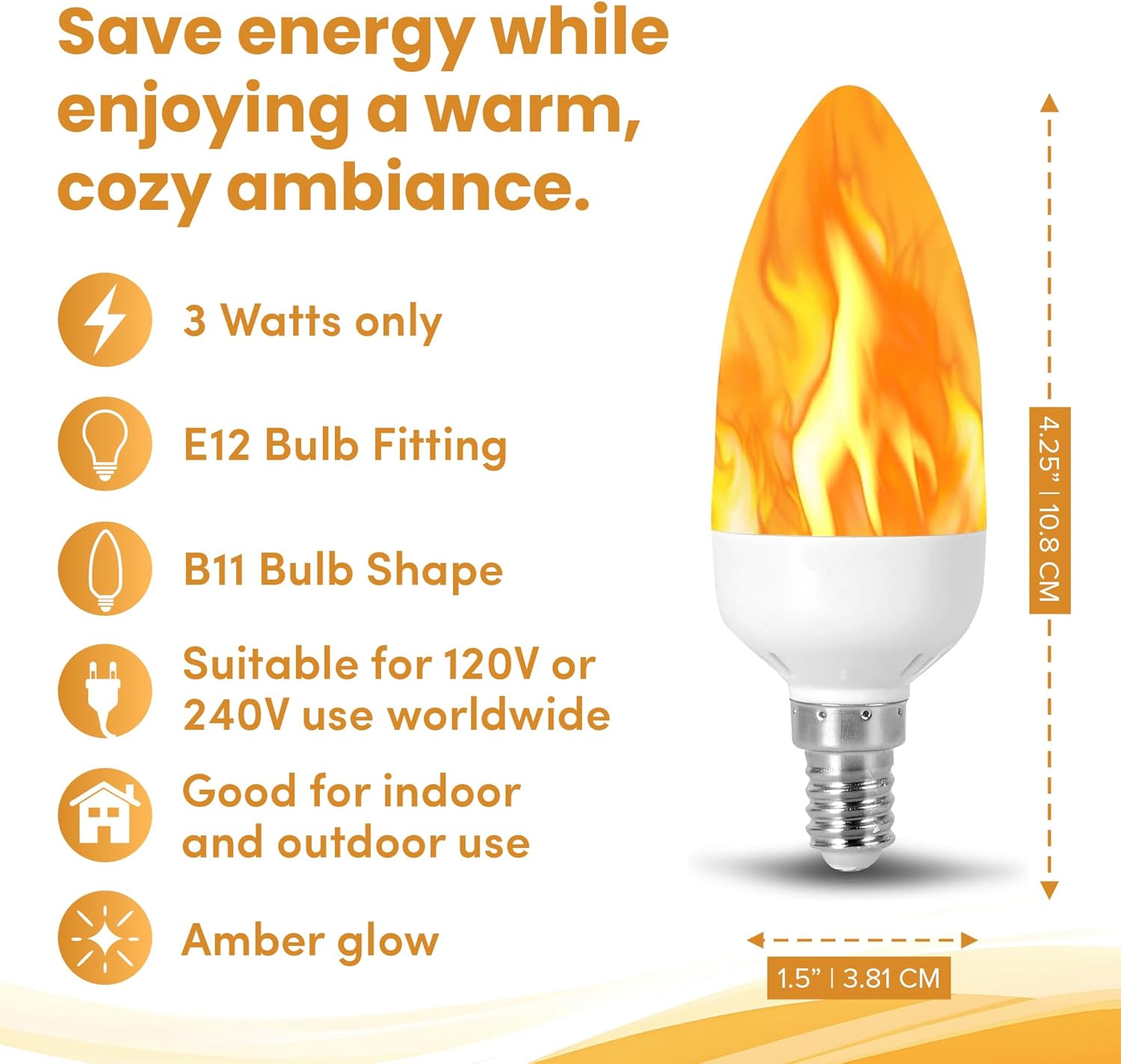 • INDOOR AND OUTDOOR ENCLOSED FIXTURE USE - Get A Really Awesome Fire Flame Look In Both Covered Fixtures or Bare Installations.