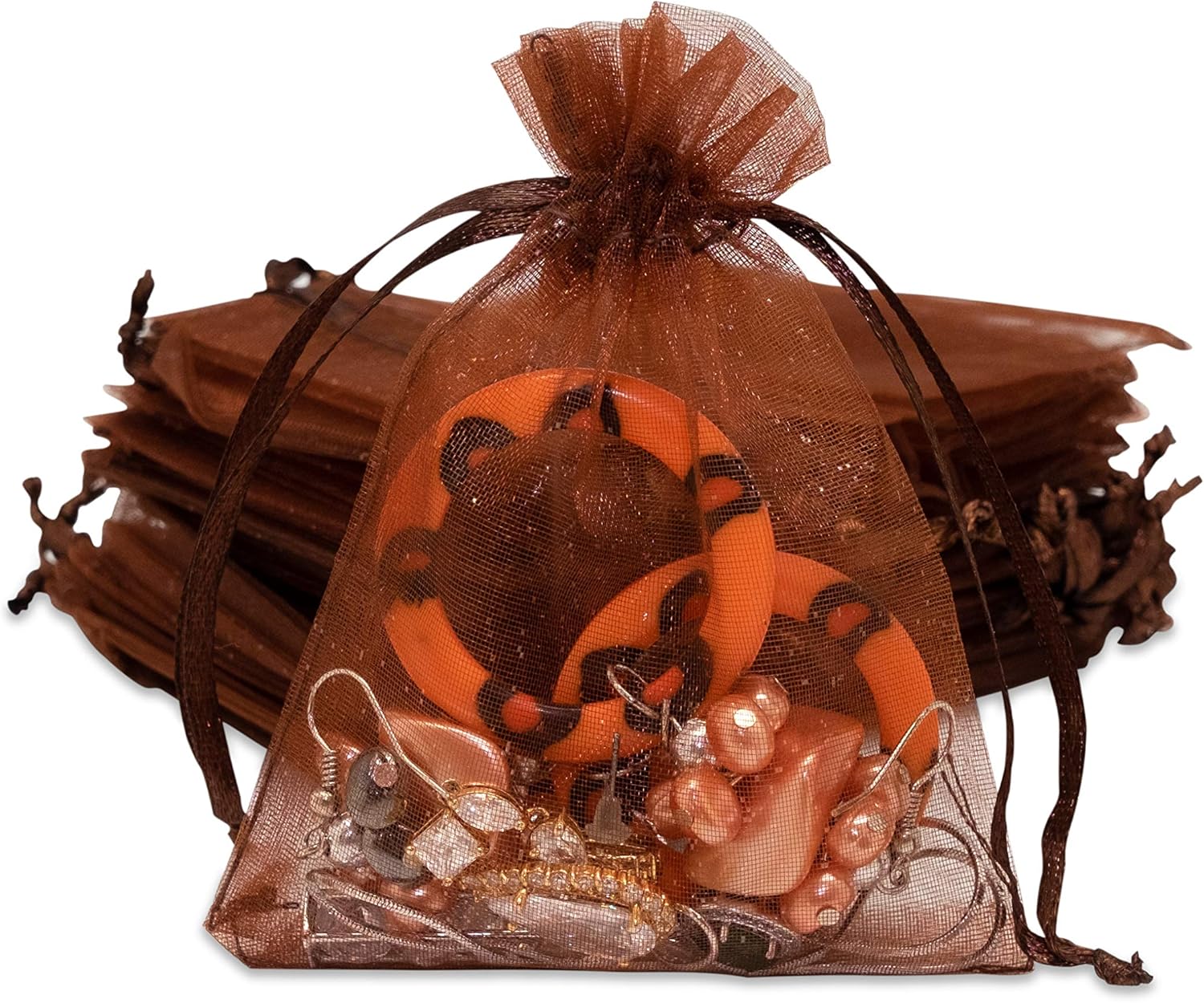 TheDisplayGuys 100-Pack 3x4 Brown Sheer Organza Gift Bags with Drawstring, Jewelry Candy Treat Wedding Party Favors Mesh Pouch