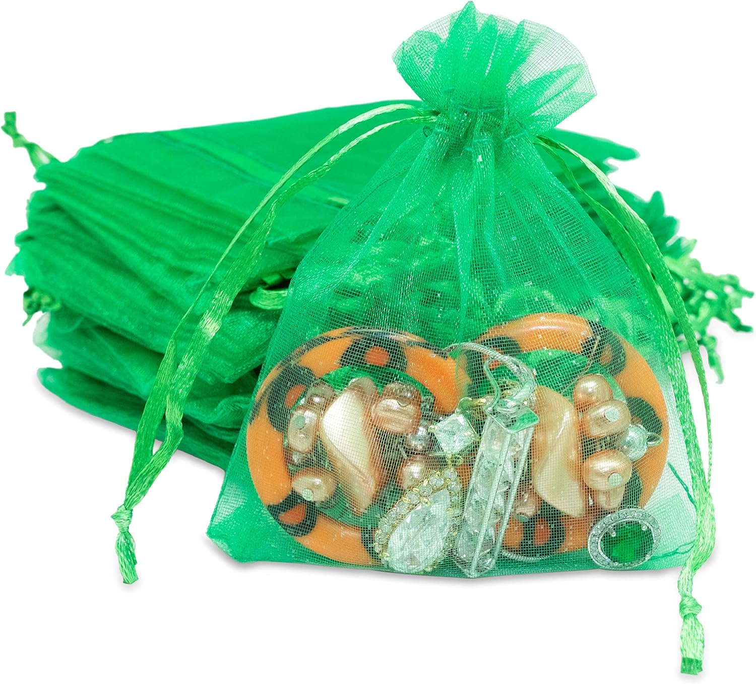 TheDisplayGuys 100-Pack 3x4 Light Green Sheer Organza Gift Bags with Drawstring, Jewelry Candy Treat Wedding Party Favors Mesh Pouch
