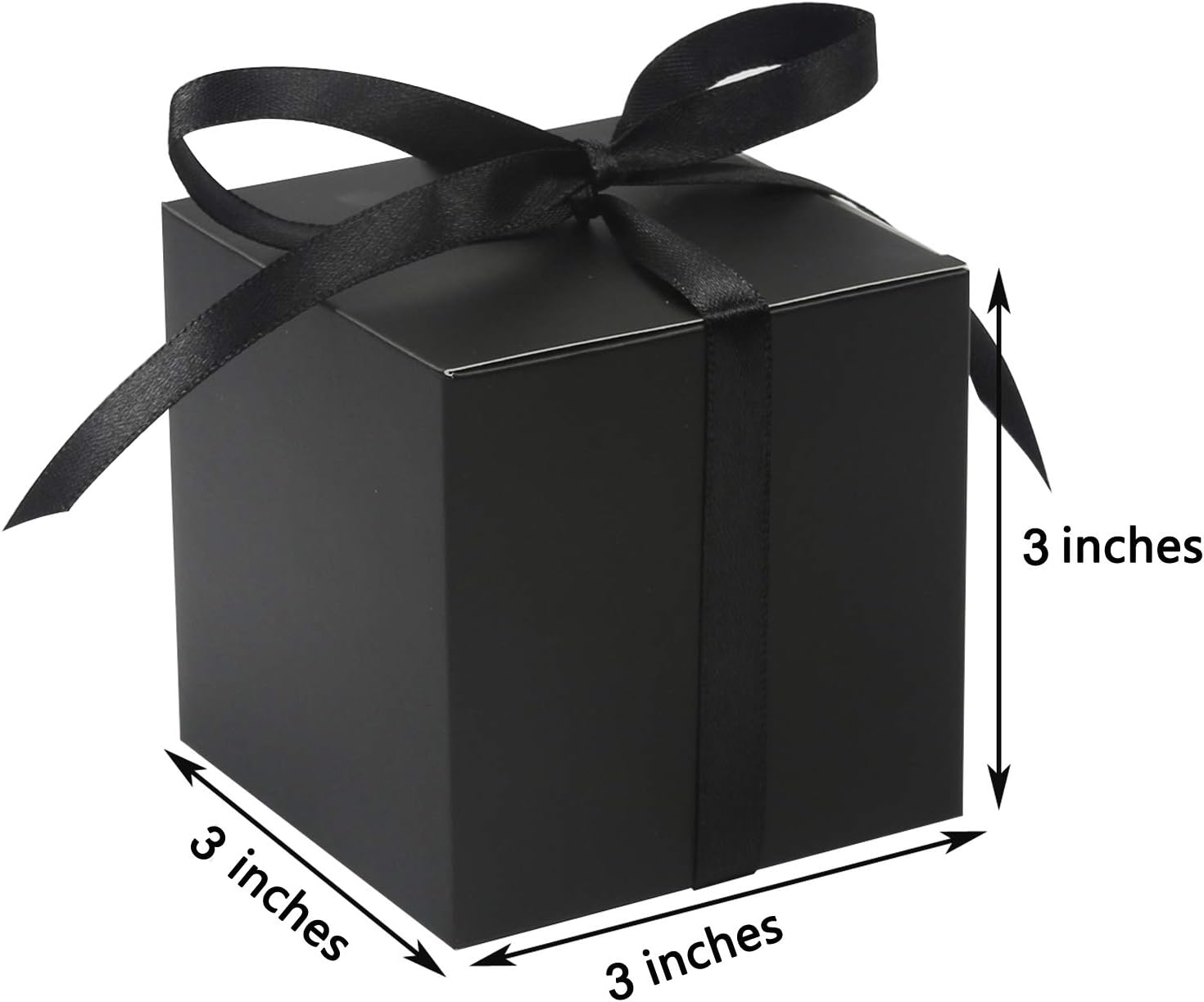 COTOPHER 60pcs Wedding Favor Boxes, Paper Gift Boxes 3x3x3 Inches Small Gift Boxes with Ribbons, Easy Assemble Boxes (Black)