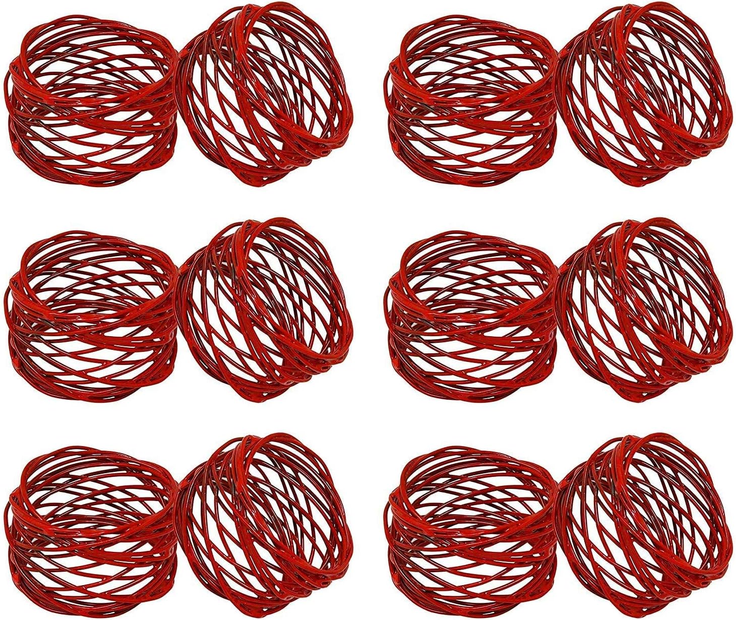 Handmade Round Red Mesh Napkin Rings Set of 12 Holder for Dinning Table Parties Everyday, Dia: 2 Inch