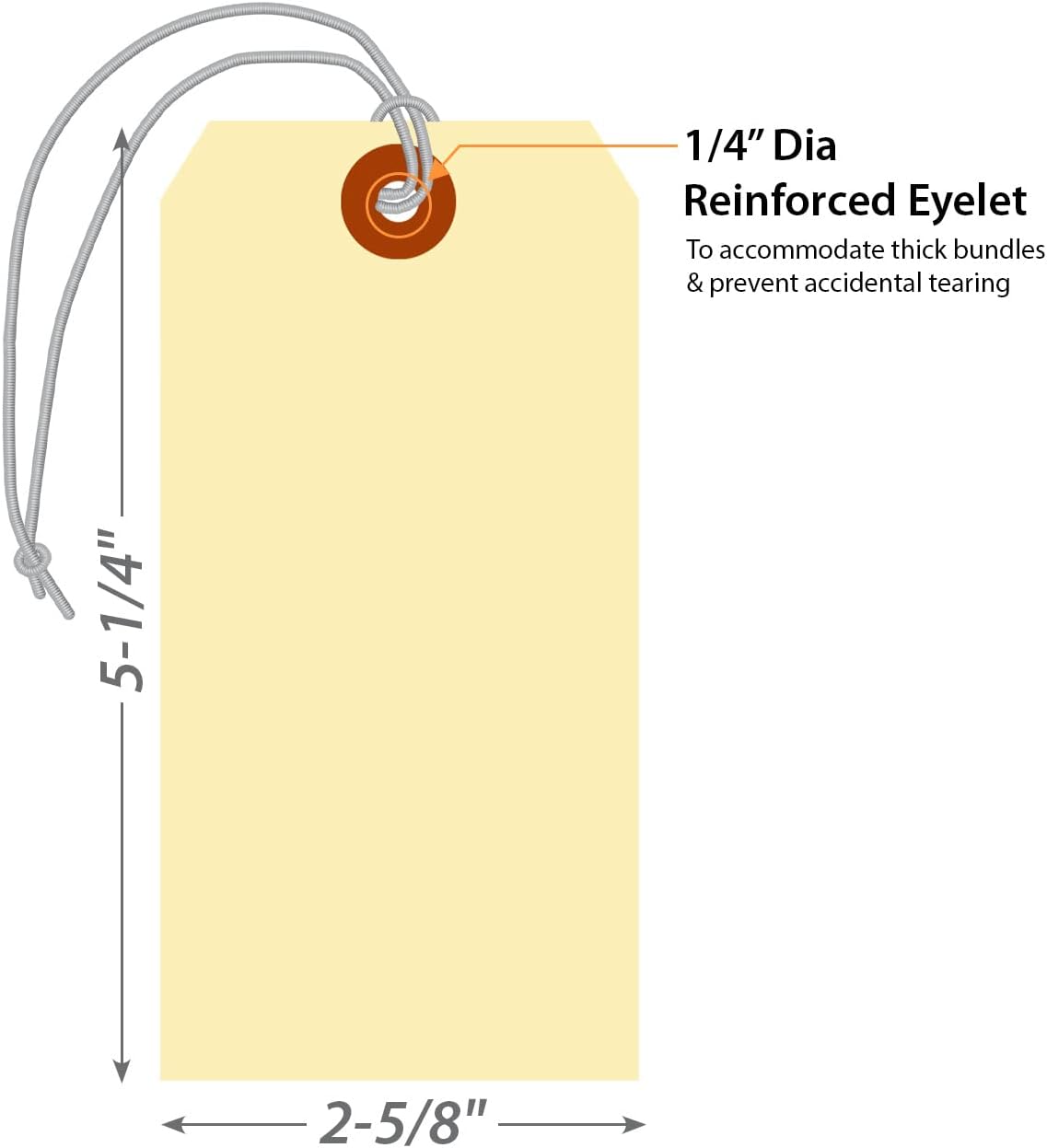 SmartSign Blank Manila Shipping Tags with Elastic Strings - Pack of 100, Size-6, 13pt Thick Pre-Strung Cardstock Tag, 5.25 x 2.625 inch, Paper Hang Tags with Reinforced Fiber Patch