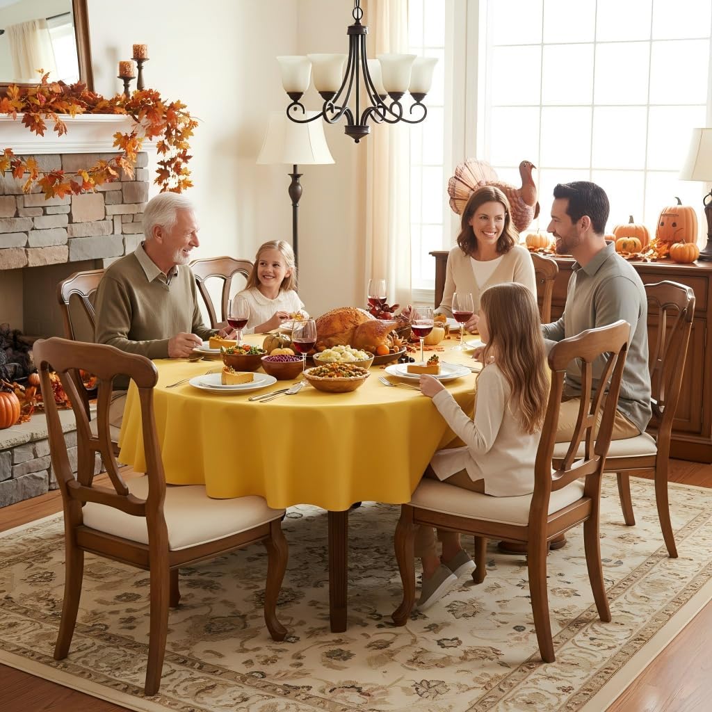 sancua Round Tablecloth - 60 Inch - Water Resistant Spill Proof Washable Polyester Table Cloth Decorative Fabric Table Cover for Dining Tables, Buffet Parties and Camping, Yellow