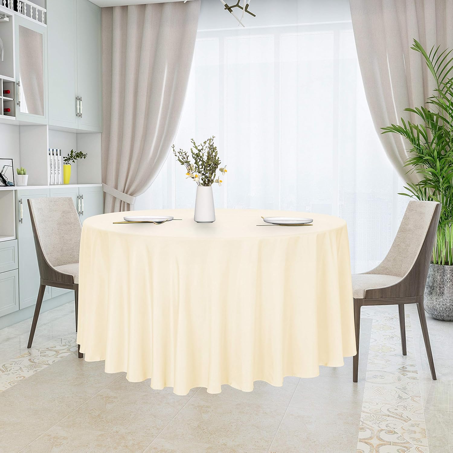 • HIGH QUALITY MATERIAL: Our tablecloth are crafted from high quality durable polyester fabric, perfect to protect and decorate your tables. The package will include 1 piece tablecloth measuring 120 inch round.