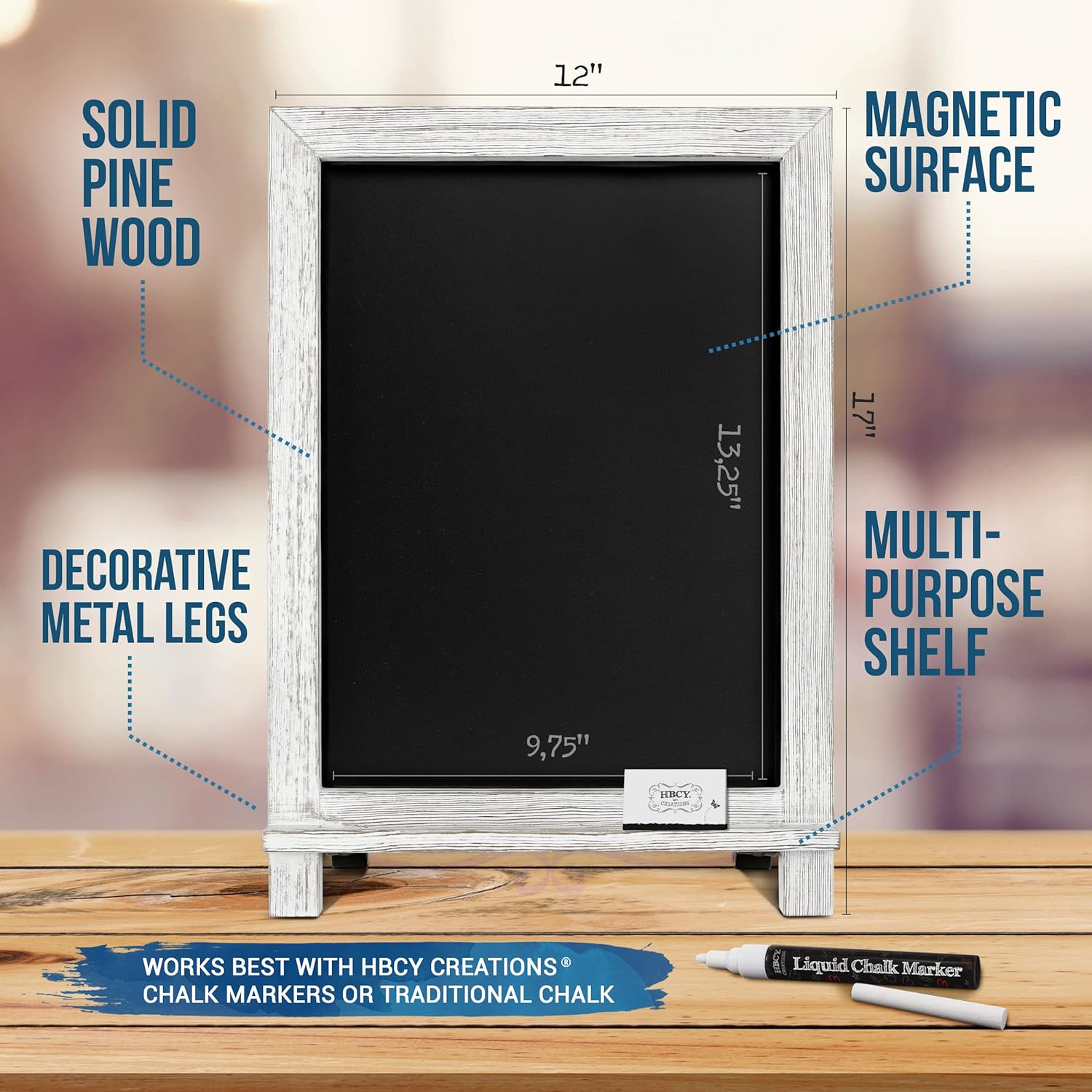 Rustic Whitewash Tabletop Chalkboard Sign/Hanging Magnetic Wall Chalkboard/Small Countertop Chalkboard Easel/Kitchen Countertop Memo Board / 12" x 17" in. Weddings, Birthdays, Baby Announcements