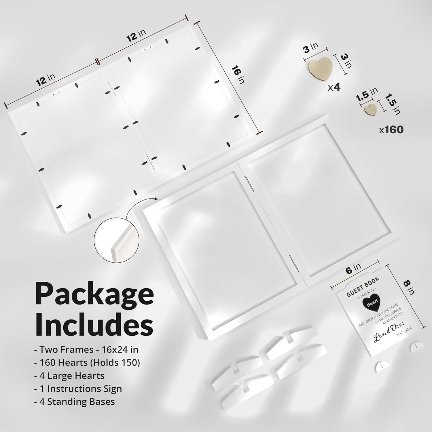 GLM Guest Book Alternative with Sign, 160 Hearts and 4 Large Hearts, Guest Book for Reception, Wedding Decor (White)