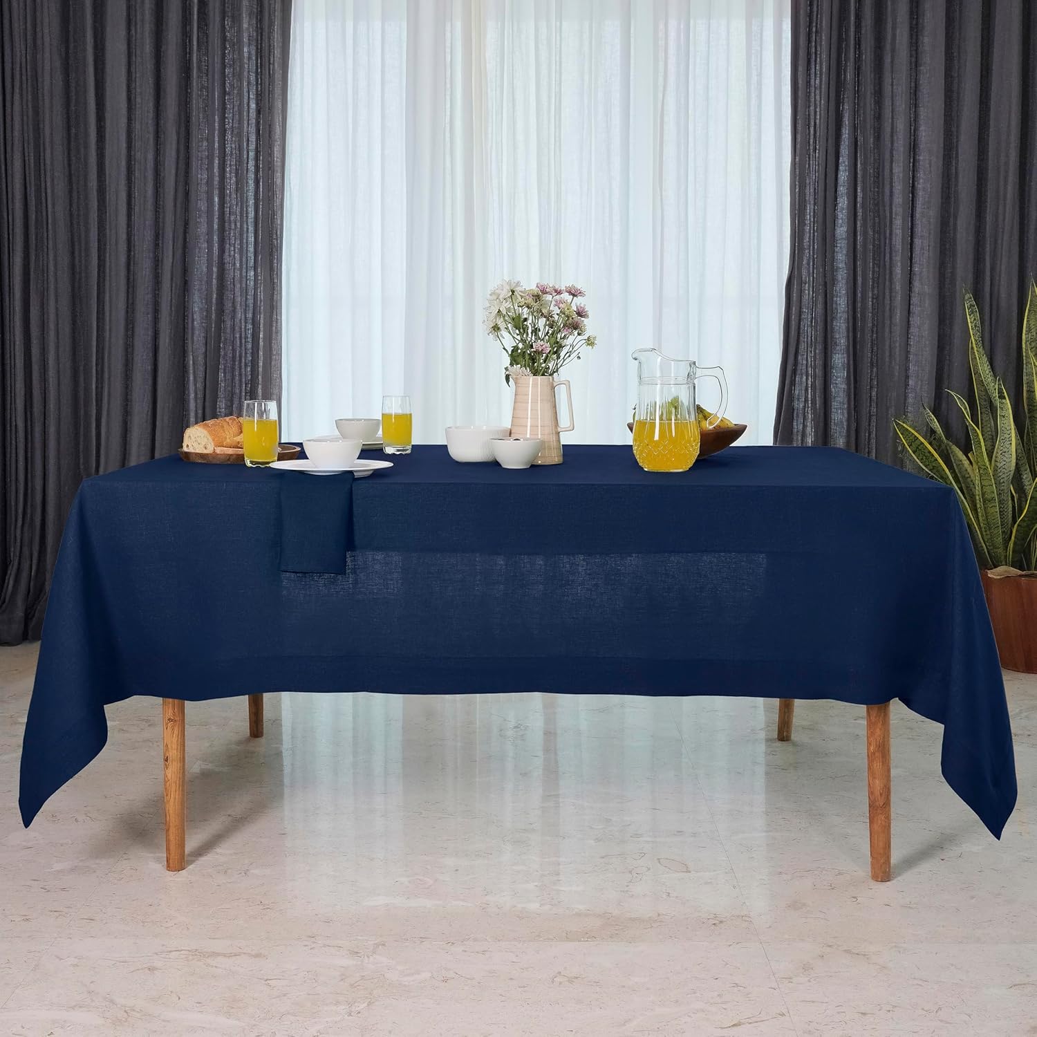 D'Moksha Homes Navy Blue Linen Tablecloth 54 x 72 Inch - 100% Pure Linen Tablecloth for Rectangle Tables - Machine Washable Table Cloth for Fall, Autumn and Halloween