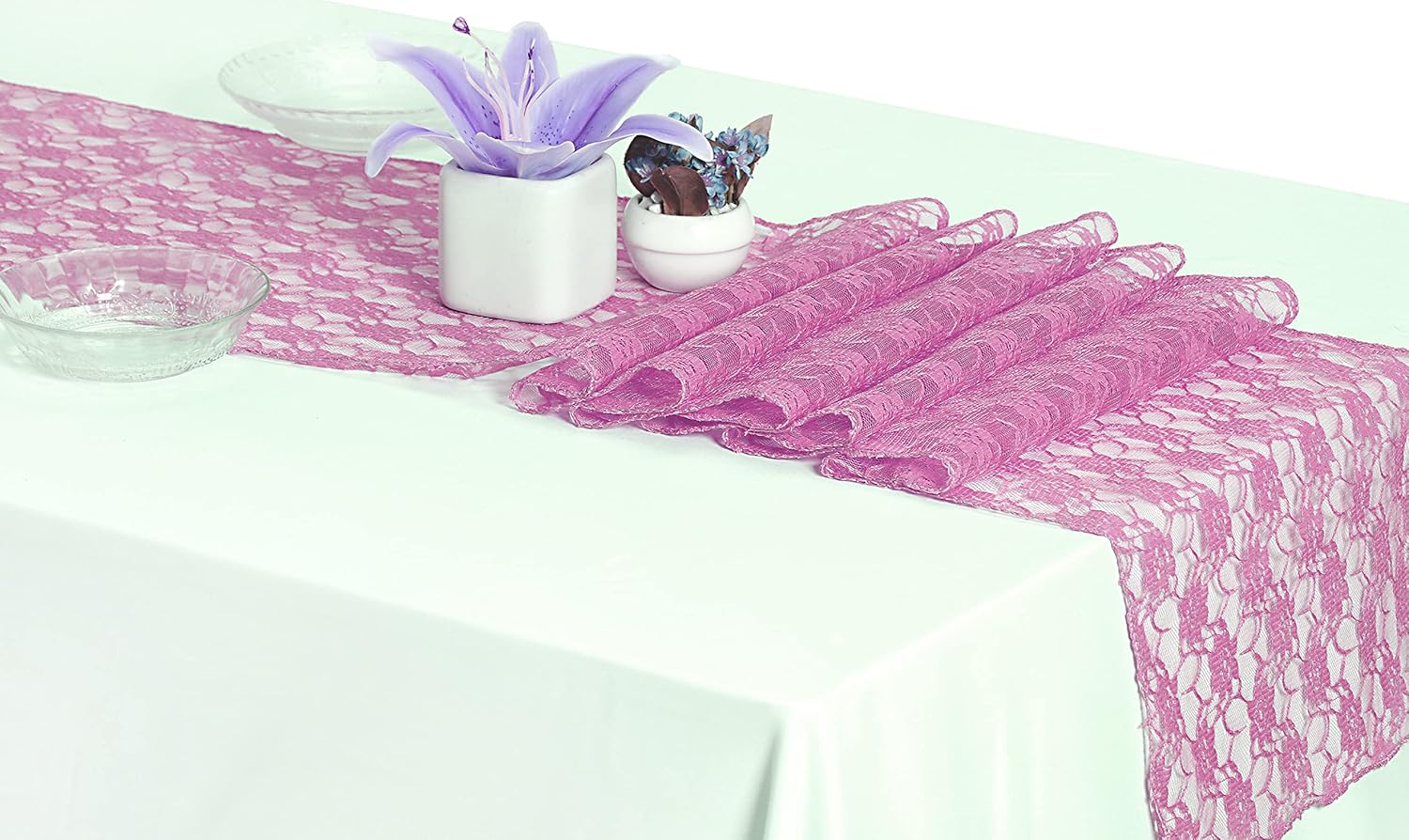 MDS Pack of 25 Wedding 12 x 108 inches Lace Table Runner for Wedding, Decorations for Birthday Parties, Banquets, Graduations, Engagements, and Runners fit Rectangle, Round Table- Dusty Pink