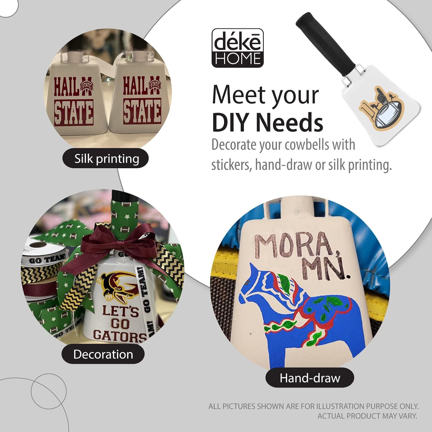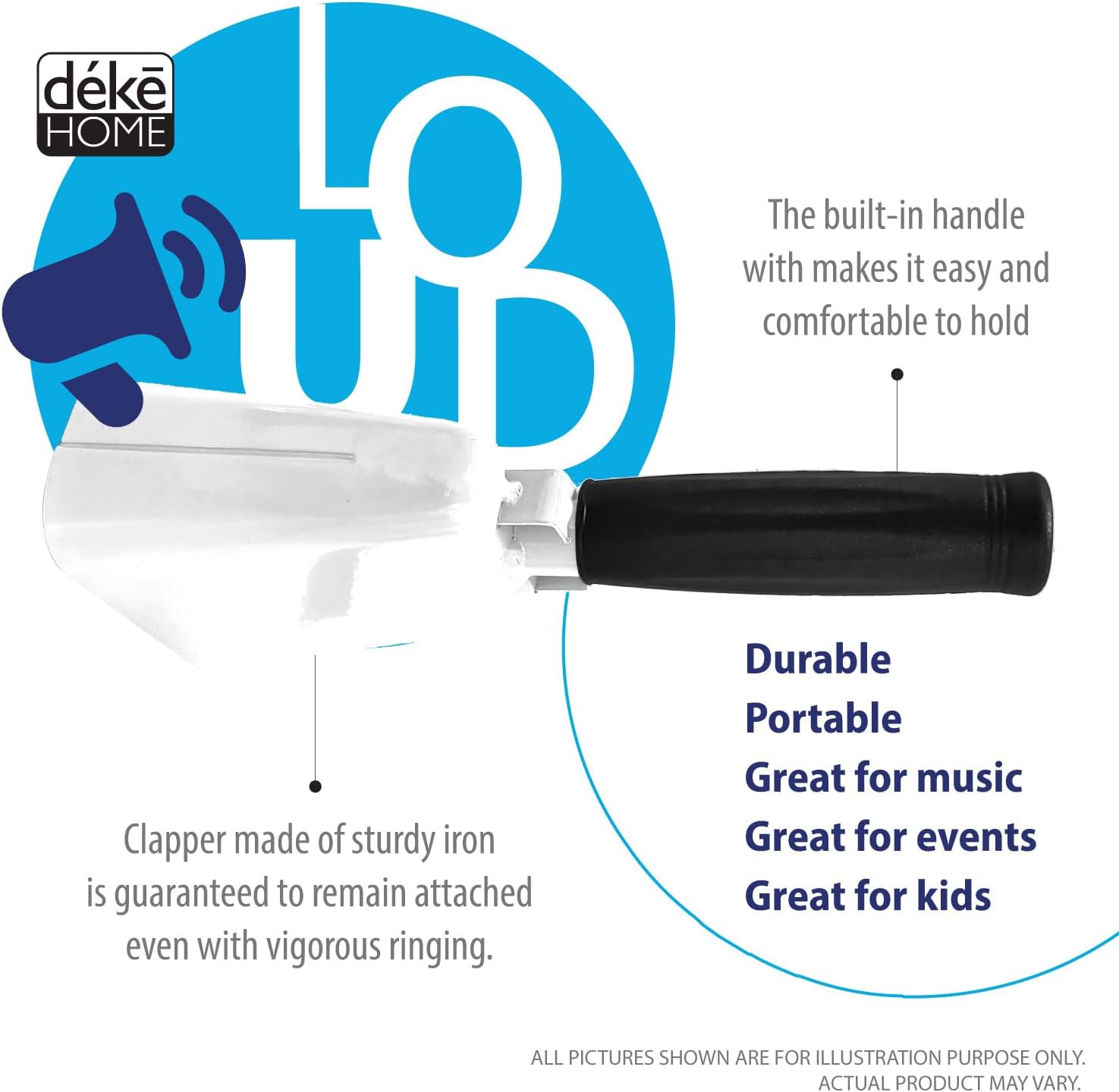 Deke Home - 2 Pack 7 Inch Steel Cowbells with Handle, Loud Noise Makers for Football, Sports, Parties, Competitions, School Spirit & Safety, Large Hand Bell for Cheering & Percussion Instrument