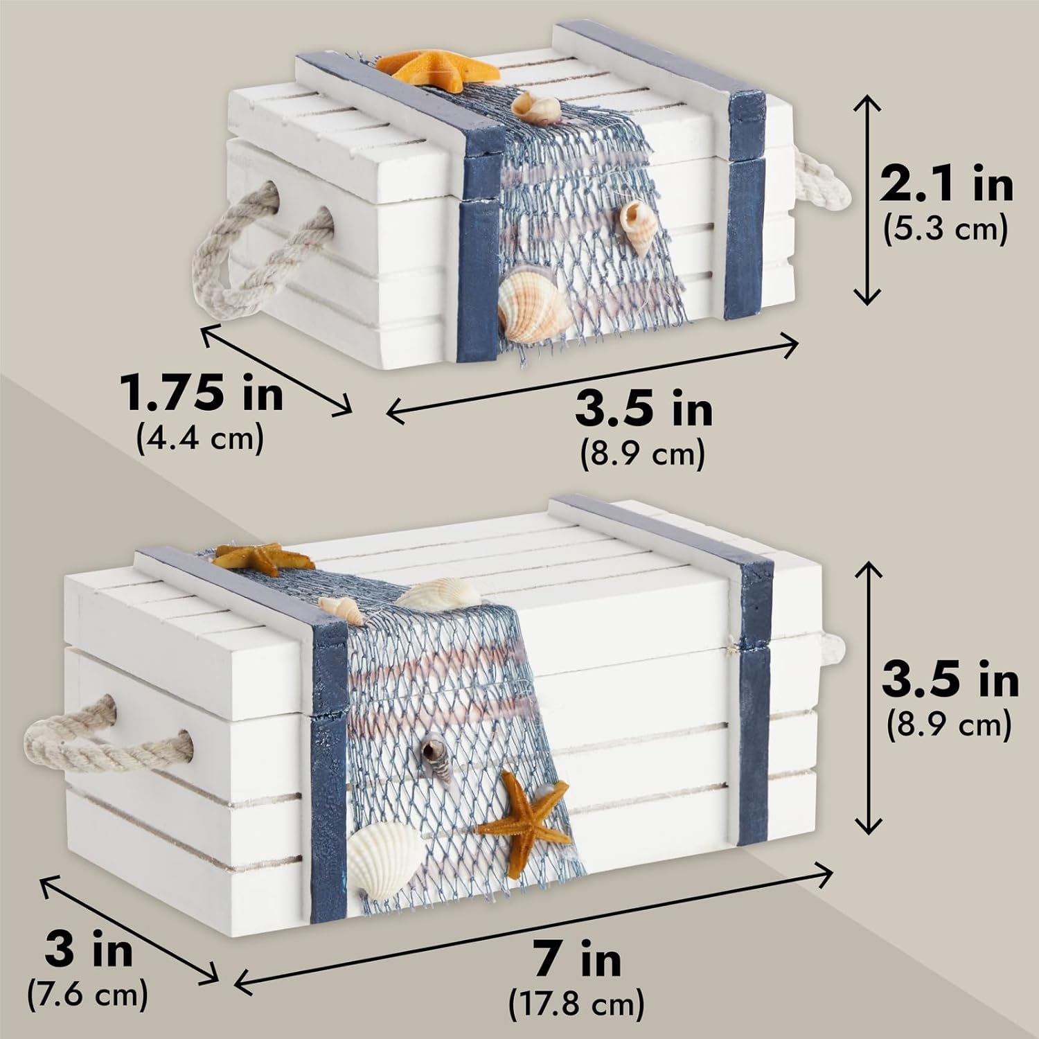 • Superior Craftsmanship: Crafted from high-quality engineered wood, each box features a sturdy hinged opening mechanism. The nautical embellishments, such as starfish and seashells, make these boxes an ideal choice for beach themed room decor