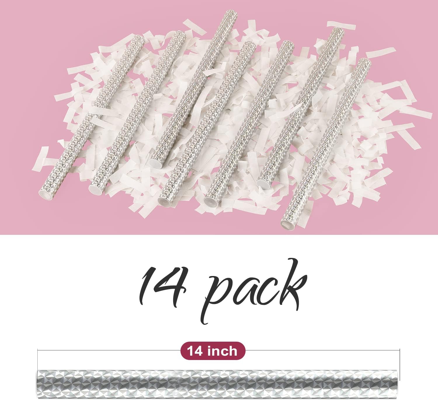 BATTIFE 14Pack White Confetti Wands Tissue Paper Confetti Flick Flutter Sticks for Wedding Celebrations Anniversary Birthday Party White, 14 Inch