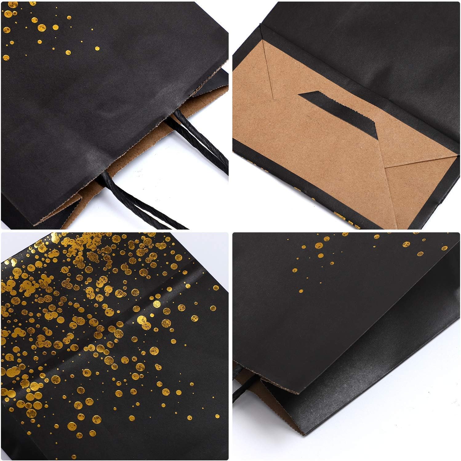 • Style: black paper bag is printed with gold dots of different sizes,with the classic color, the bag is versatile, good-looking and practical, the bag is more shiny under the light, can catch people's eyes and add atmosphere to the party