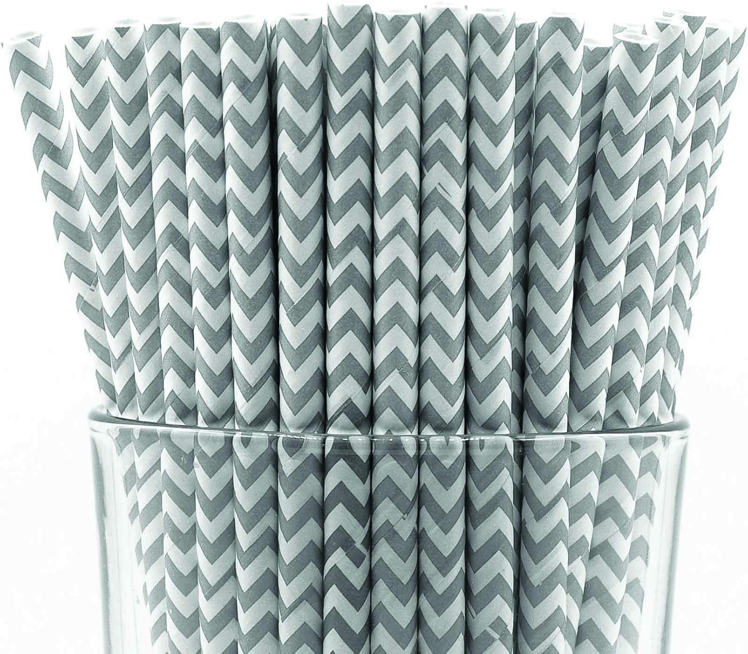 Pack of 150 Gray Chevron Biodegradable 4-Ply Paper Drinking Straws (Compostable, Non-toxic, BPA-free)