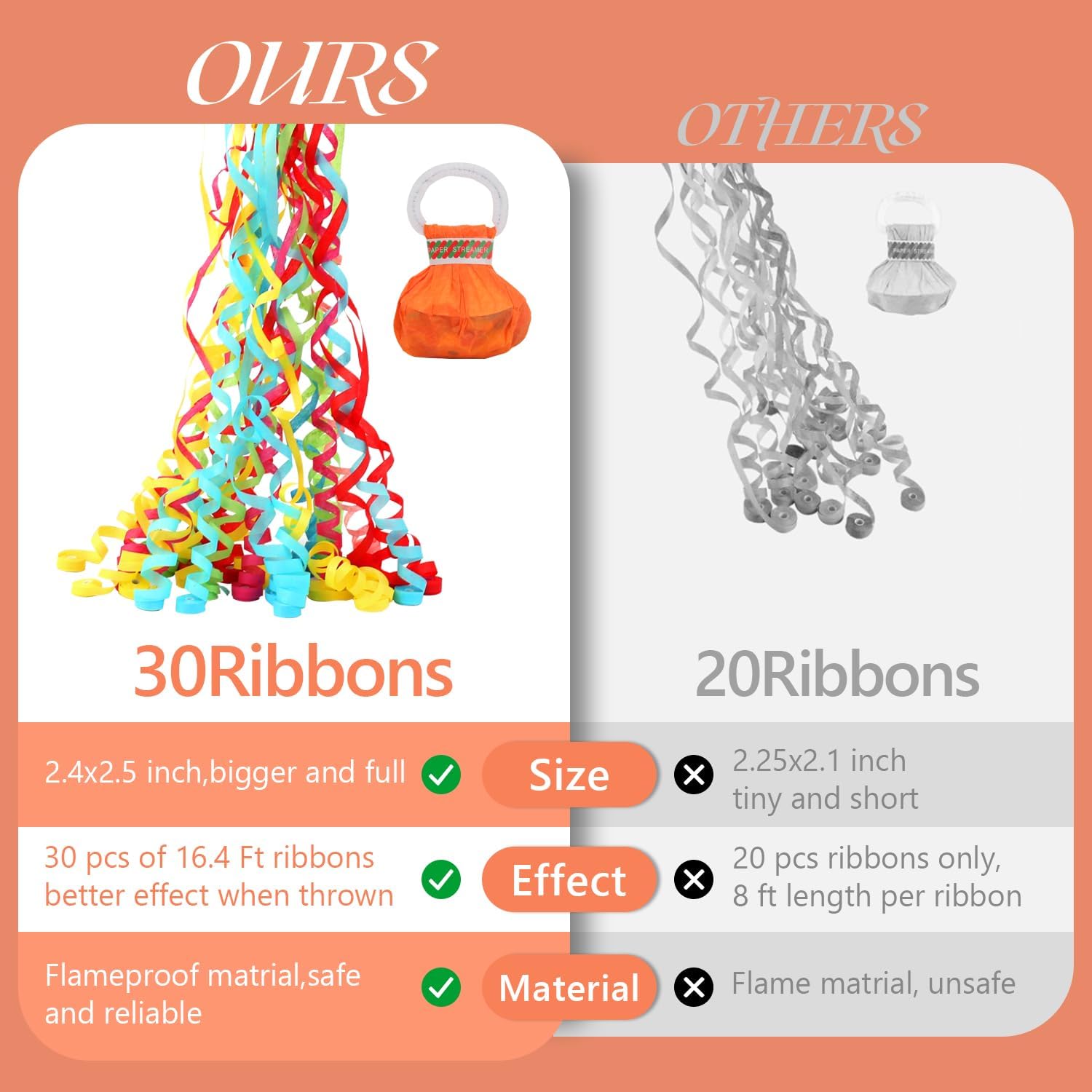 • Size & Quantity : There are 20 packs colorful streamers in total, and each crackers poppers has 30pcs streamer inside, and the length of each streamer is approx 6 meters, invite your friends or your kids to play together