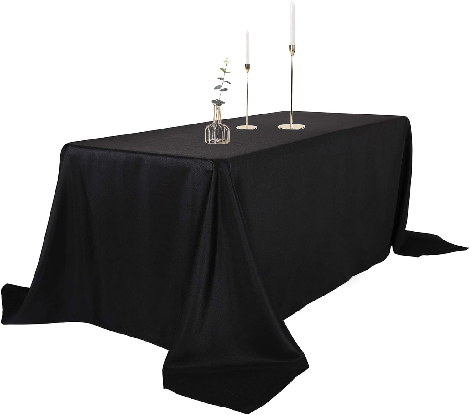 Ascoza 2pack 90x132 Inch Black Rectangular Tablecloth 8 Feet Table Cloth in Polyester Fabric for Wedding/Banquet/Restaurant/Parties