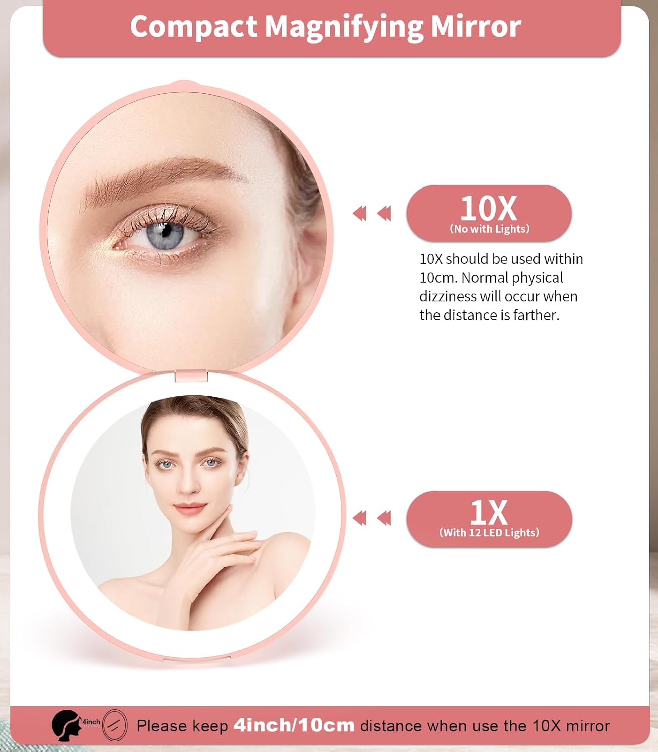 • 【Led Compact Mirror】3.5" diameter and only 0.7" thick, easy carry on,perfect for handbag,purse or pocket.