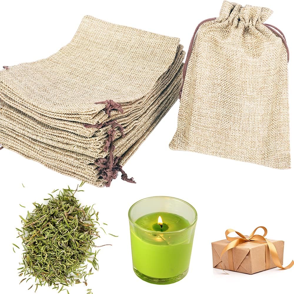 LYSXP 50PCS Burlap Bags with Drawstring,5x7 Inch Cream color Drawstring Gift Bag Jewelry Pouches for Wedding Party Favors, DIY Craft