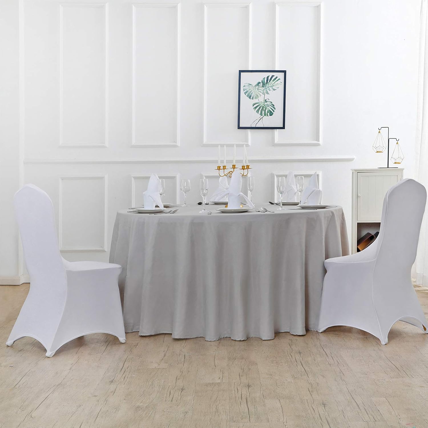 132 inch Round Tablecloth Washable Polyester Table Cloth Decorative Table Cover for Wedding Party Dining Banquet(132 inch,Silver)
