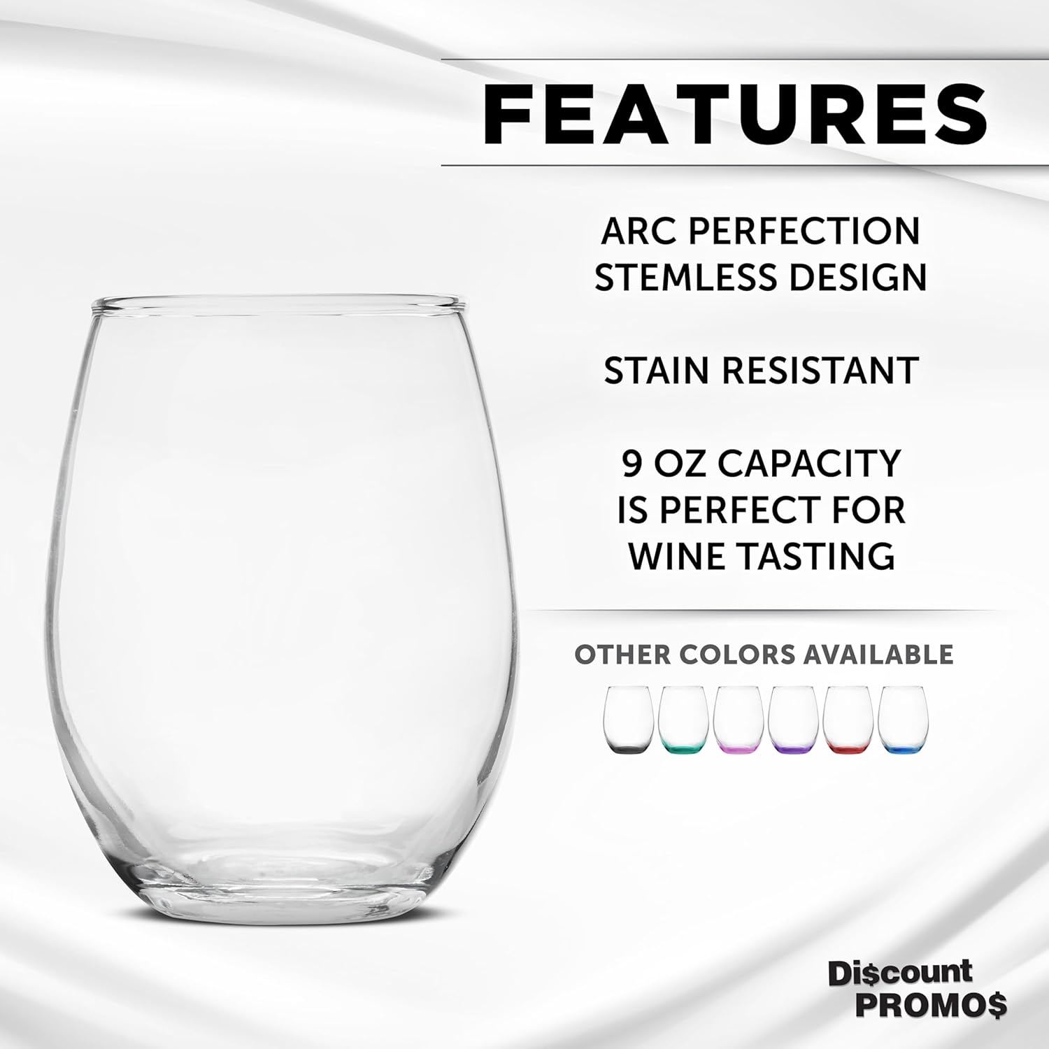 • CUSTOMIZABLE & AVAILABLE IN VARIOUS COLORS - Available with a base in clear, blue, black, green pink, red, or purple. Order our stemless wine glasses etched or engraved and add your brand name, logo, and event dates. Or purchase blank and enhance your dΓ©cor.
