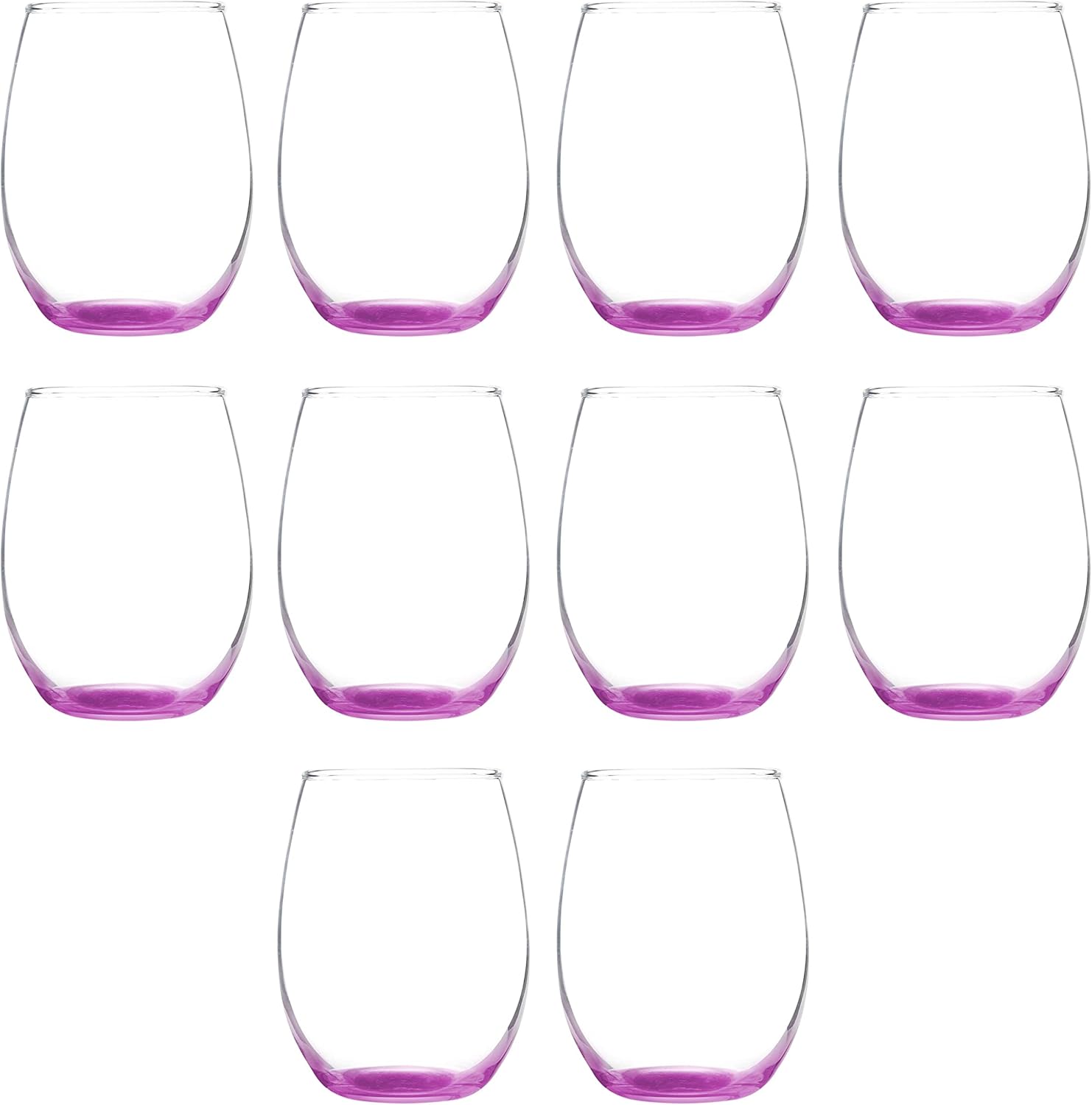 DISCOUNT PROMOS Stemless Wine Glass 9 oz. Set of 10, Bulk Pack - Great for Wedding Favors, Bachelorette Party and More - Pink Bottom Color