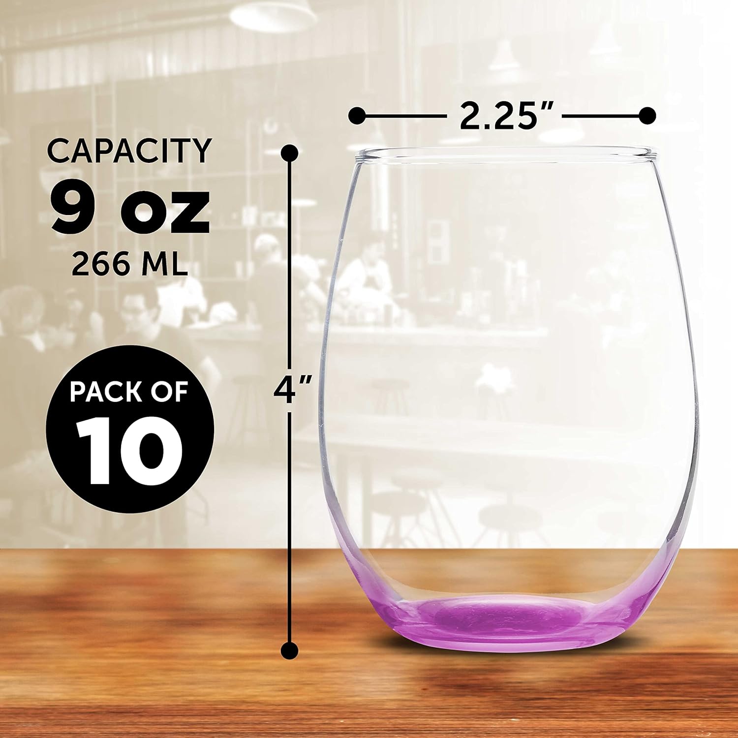 • CUSTOMIZABLE & AVAILABLE IN VARIOUS COLORS - Available with a base in clear, blue, black, green pink, red, or purple. Order our stemless wine glasses etched or engraved and add your brand name, logo, and event dates. Or purchase blank and enhance your dΓ©cor.