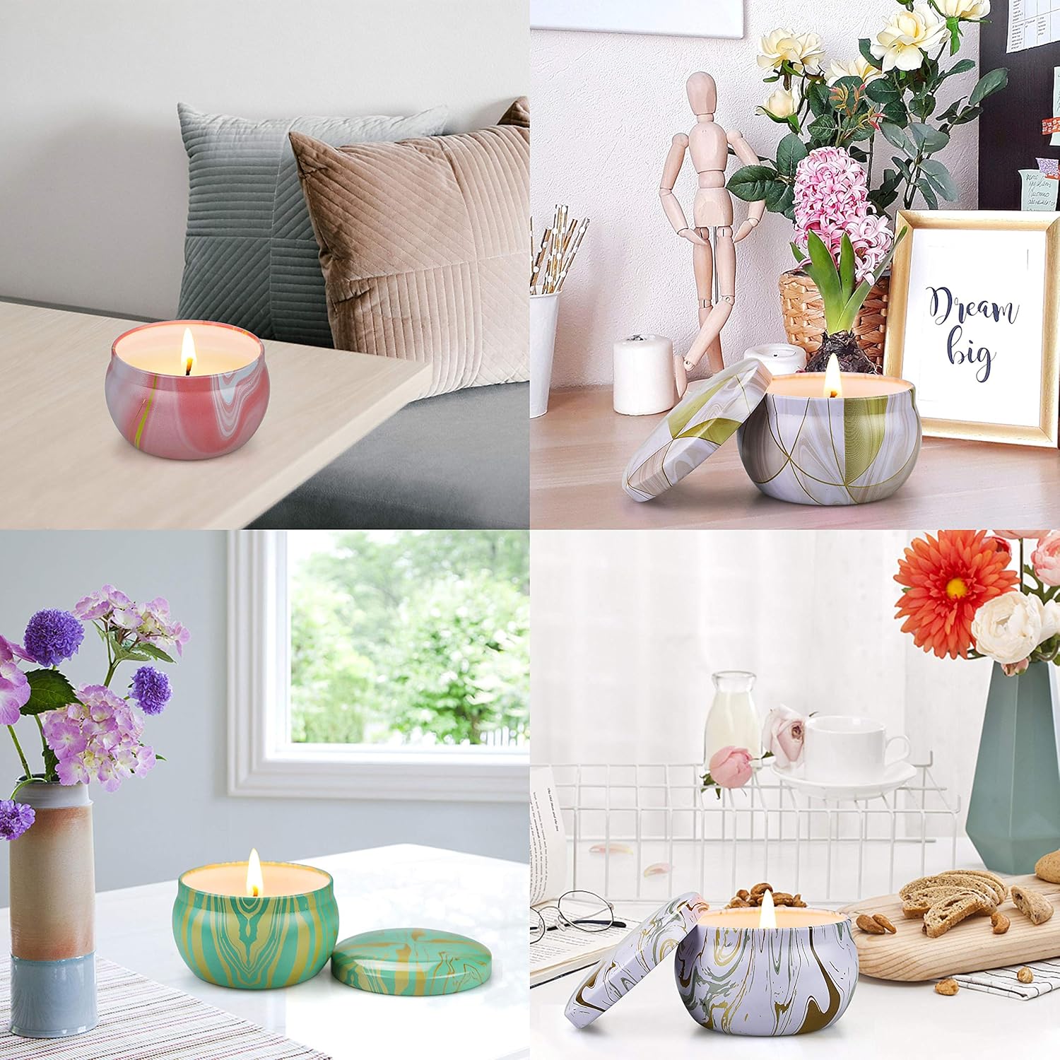 • ๐ŸŽ[Safe & Natural Soy Candles]: Different from those unhealthy paraffin wax candles, our soy candles made of 100% natural soy wax, burns clean and evenly. The lead-free wick cotton will not produce black smoke and is harmless to the environment and humans.