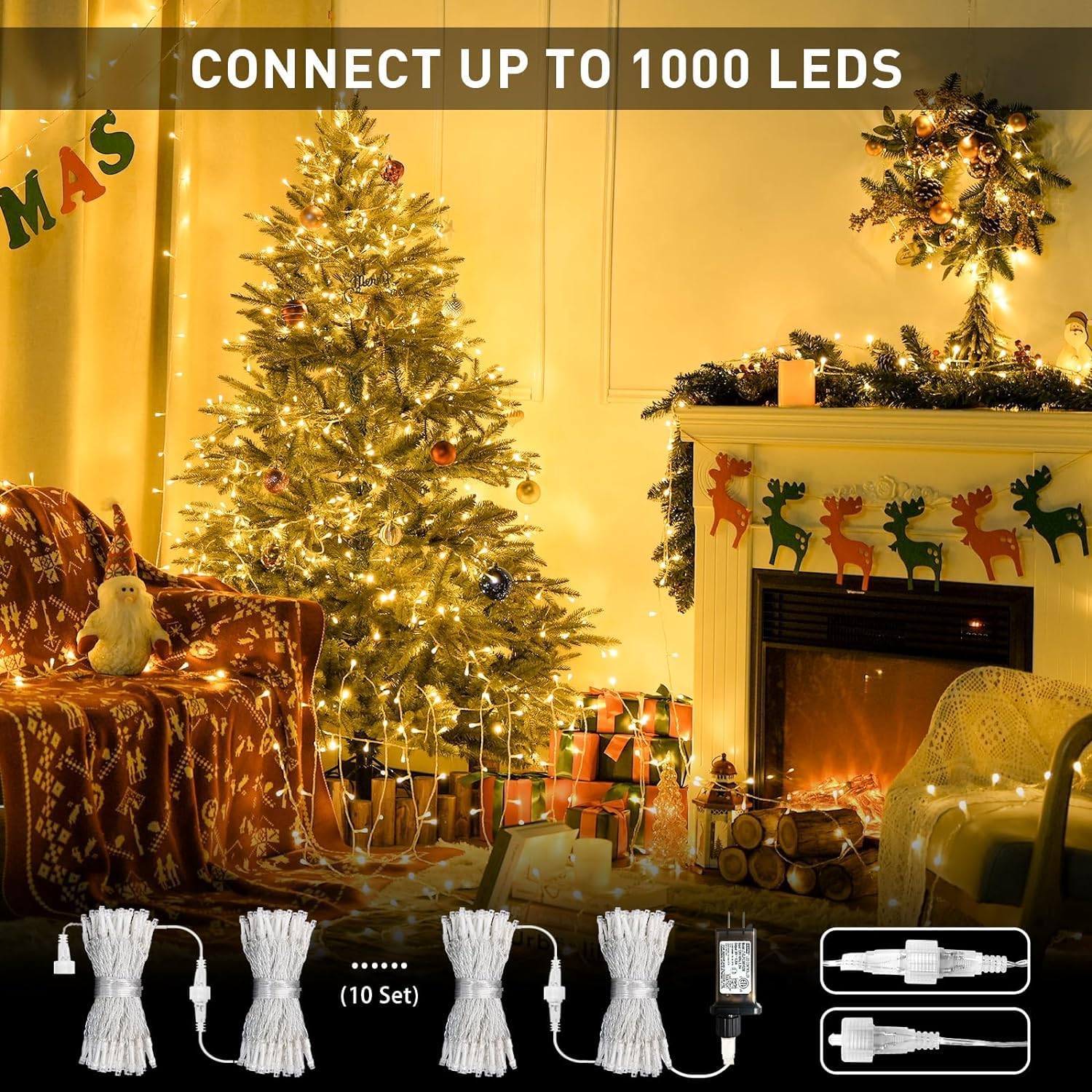 • 【CONNECTABLE SUPER BRIGHT CHRISTMAS STRING LIGHTS】 Our LED Christmas lights use advanced LED chips, each LED bulb shines with a 360 degree viewing angle, and the plug design of LED string lights greatly improve the stability of the bulb brightness. These lights are very soft and not dazzling, adding a charming ambiance to your decoration. In addition, LED string lights indoor with Male & Female Safe Plug, can up to extended to 4 light chains(maximum 1000 LED), greatly expand the lighting range