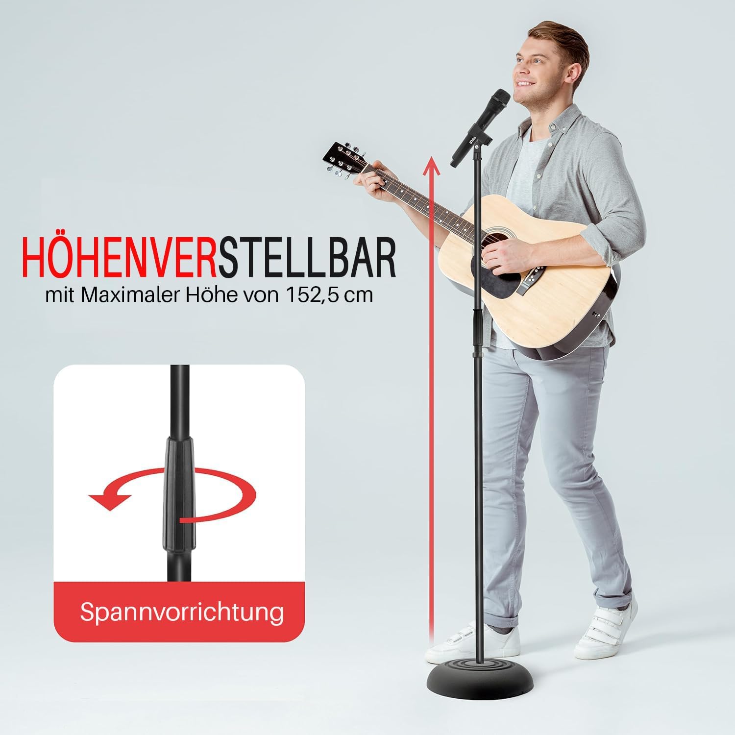 • HEIGHT ADJUSTABLE: Allows you to adjust height from 2.8 to 5 feet. The heavy compact base microphone stand adjusts smoothly, raise/lower height adjustments depending on the user's height. Also features universal USA standard ⅝ inch screw-on threading