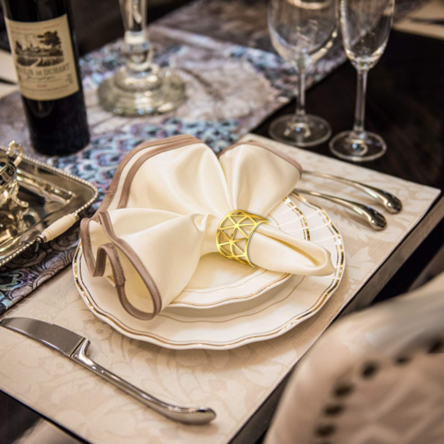 • Sturdy Material: These napkin holders are made out of durable metal, wear-resistant and durable; the metal napkin rings are in hollow design, simple and beautiful, good accessories to hold the napkins in place.You can use them together with other table settings for both casual and formal occasions.