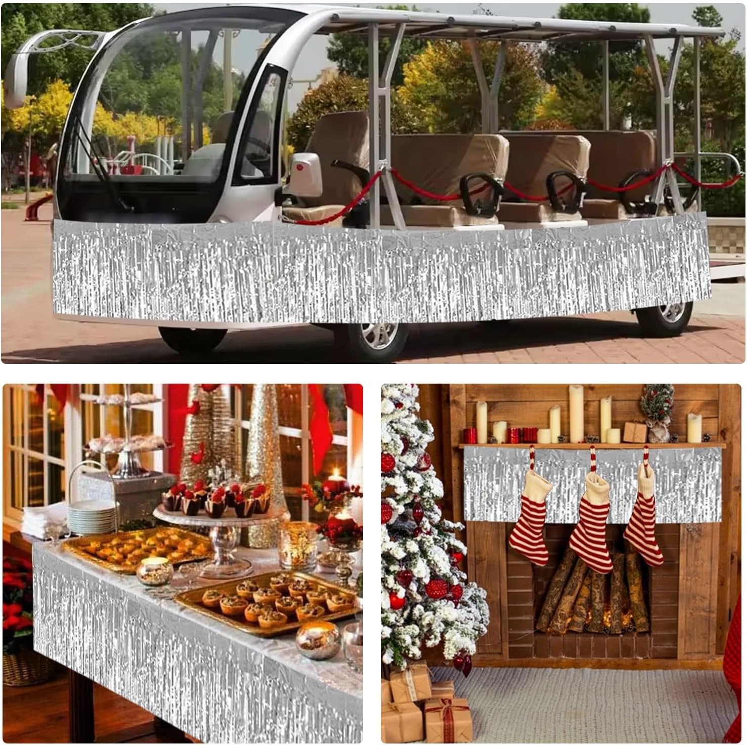 BEISHIDA 3 Packs 30 Feet Metallic Foil Fringe Garland Tinsel Streamers,Shiny Silver Wall Hanging Tinsel Fringe Banners for Wedding Birthday Party Decoration Halloween Christmas New Year