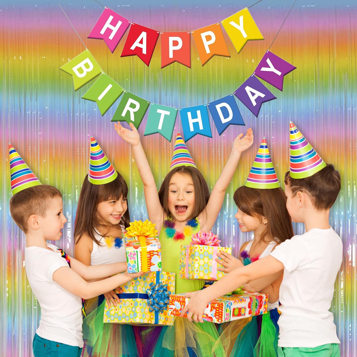 Melsan 2 Pack 3.2 ft x 8.2 ft Pastel Tinsel Foil Fringe Curtains Backdrop, Metallic Rainbow Foil Curtains for Easter Party Decorations Party Photo Booth Props Decoration (Rainbow)