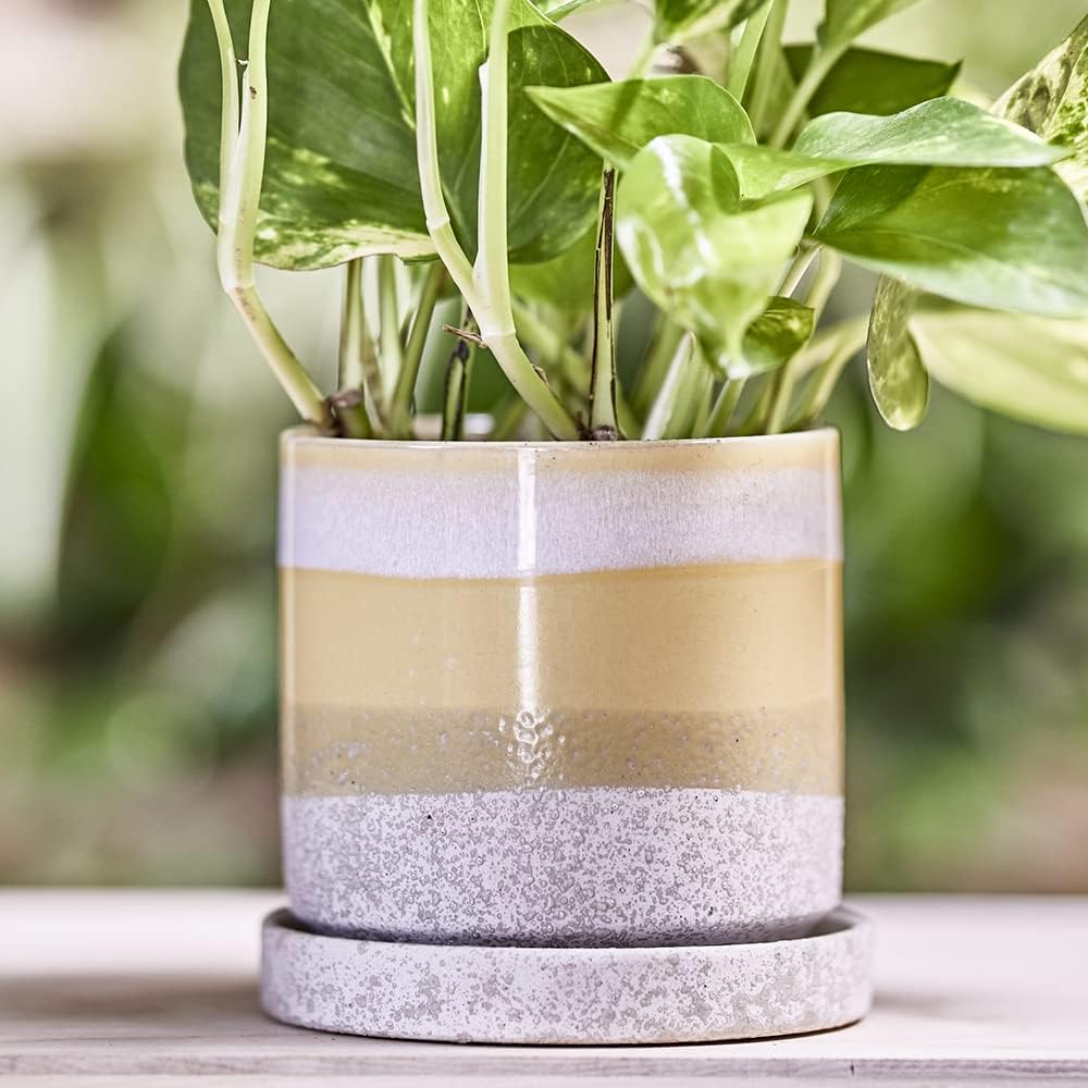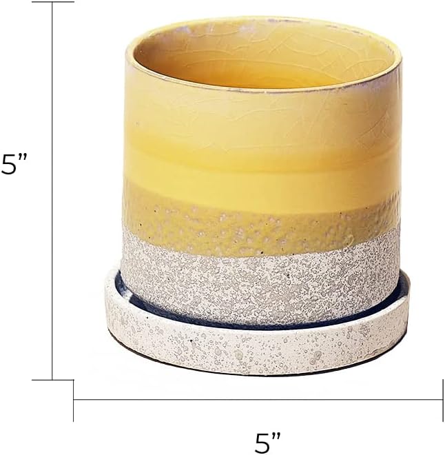 CHIVE - Minute, Succulent, Cactus Pot and Saucer Ceramic Flower and Plant Container with Drainage Hole and Detachable Saucer Great for Indoor/Outdoor Garden Decor (Yellow)